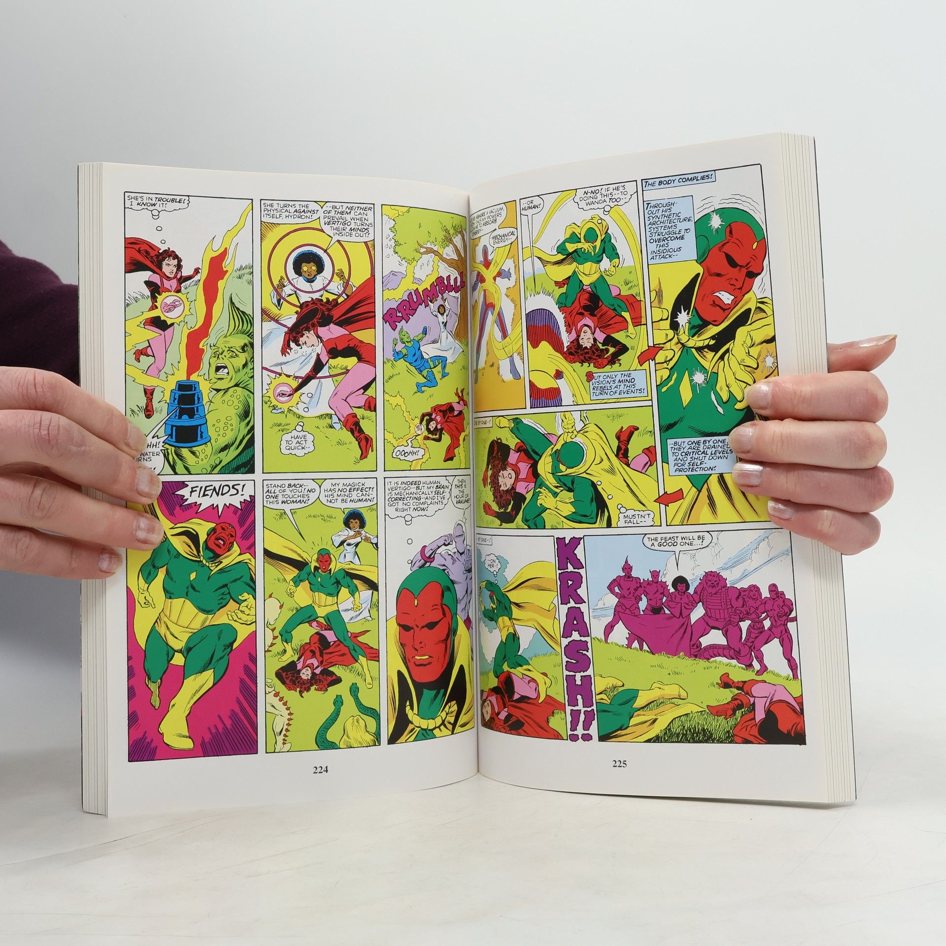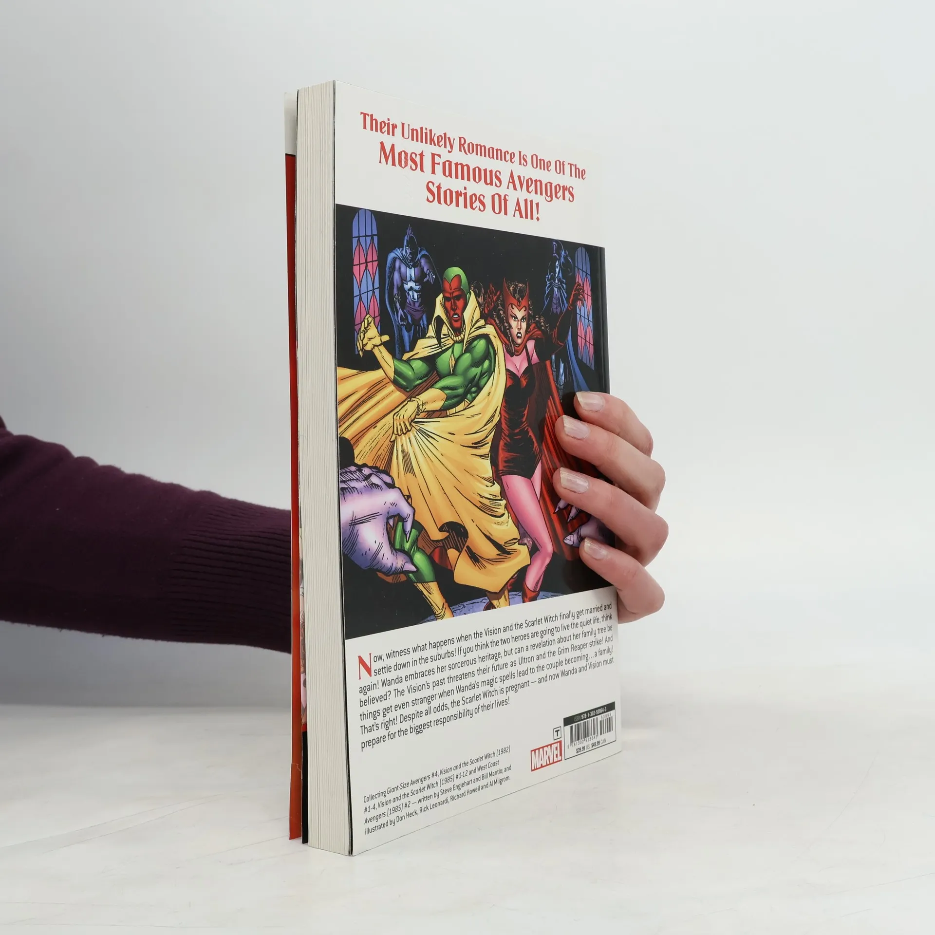 The unlikely romance between the Vision and the Scarlet Witch is one of the most famous Avengers storylines of all! Now, witness what happens when the two heroes finally get married and settle down in the suburbs! If you think they’re going to live the quiet life, think again! Wanda embraces her sorcerous heritage — but can a revelation about her family tree be believed? The Vision’s past threatens their future, as Ultron and the Grim Reaper strike! And things get even stranger when Wanda’s magic spells lead to the couple becoming…a family! That’s right, despite all odds the Scarlet Witch is pregnant — and now Wanda and Vision must prepare for the biggest responsibility of their lives!Collects: Giant-Size Avengers (1974) #4, Vision and the Scarlet Witch (1982) #1-4, Vision and the Scarlet Witch (1985) #1-12, West Coast Avengers (1985) #2.