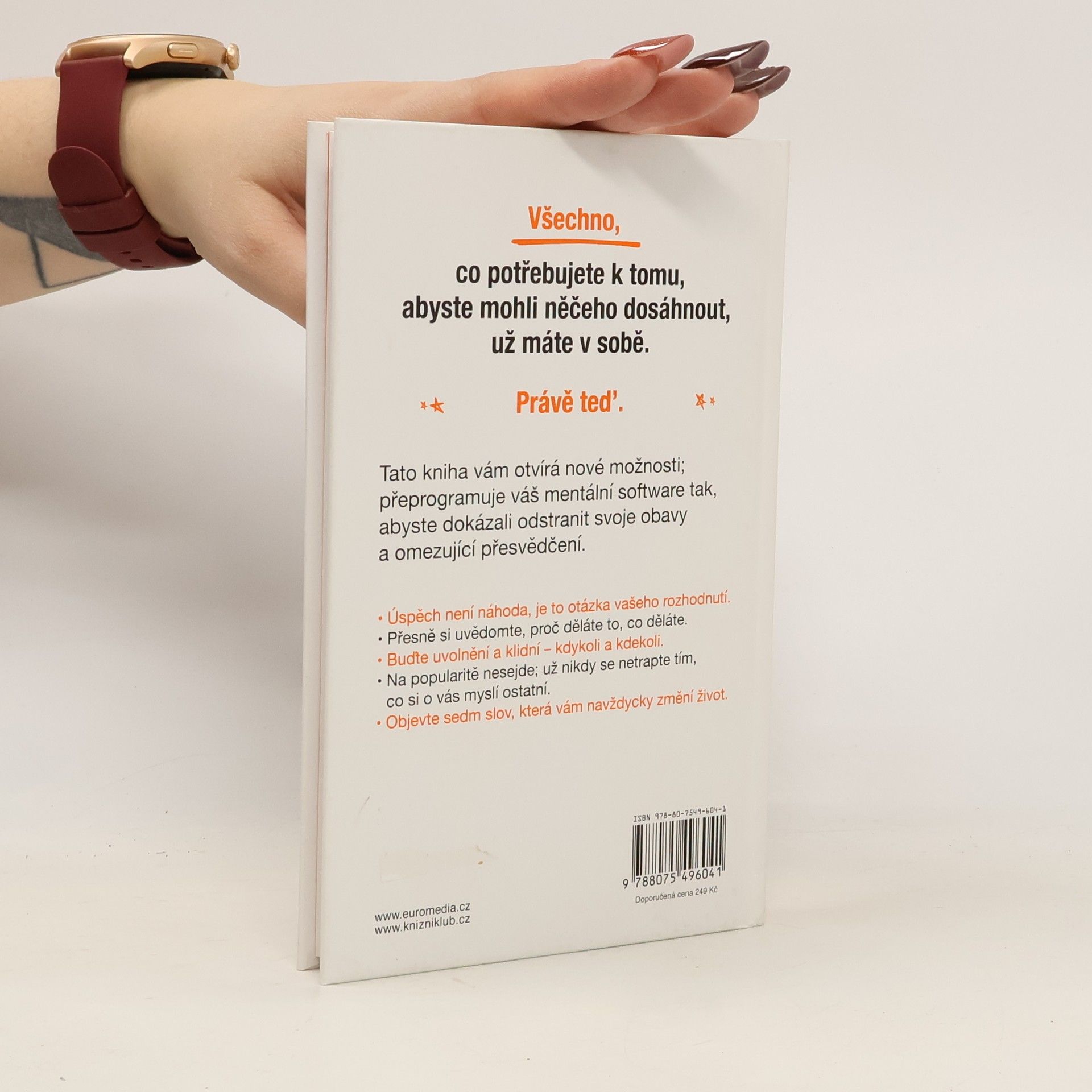 Všechno, co potřebujete k tomu, abyste mohli něčeho dosáhnout, už máte v sobě – právě teď. Tato kniha vám otvírá nové možnosti; přeprogramuje váš mentální software tak, abyste dokázali odstranit svoje obavy a omezující přesvědčení. •Úspěch není náhoda, je to otázka vašeho rozhodnutí. •Přesně si uvědomte, proč děláte to, co děláte. •Buďte uvolnění a klidní – kdykoli a kdekoli. •Na popularitě nesejde; už nikdy se netrapte tím, co si o vás myslí ostatní. •Objevte sedm slov, která vám navždycky změní život.