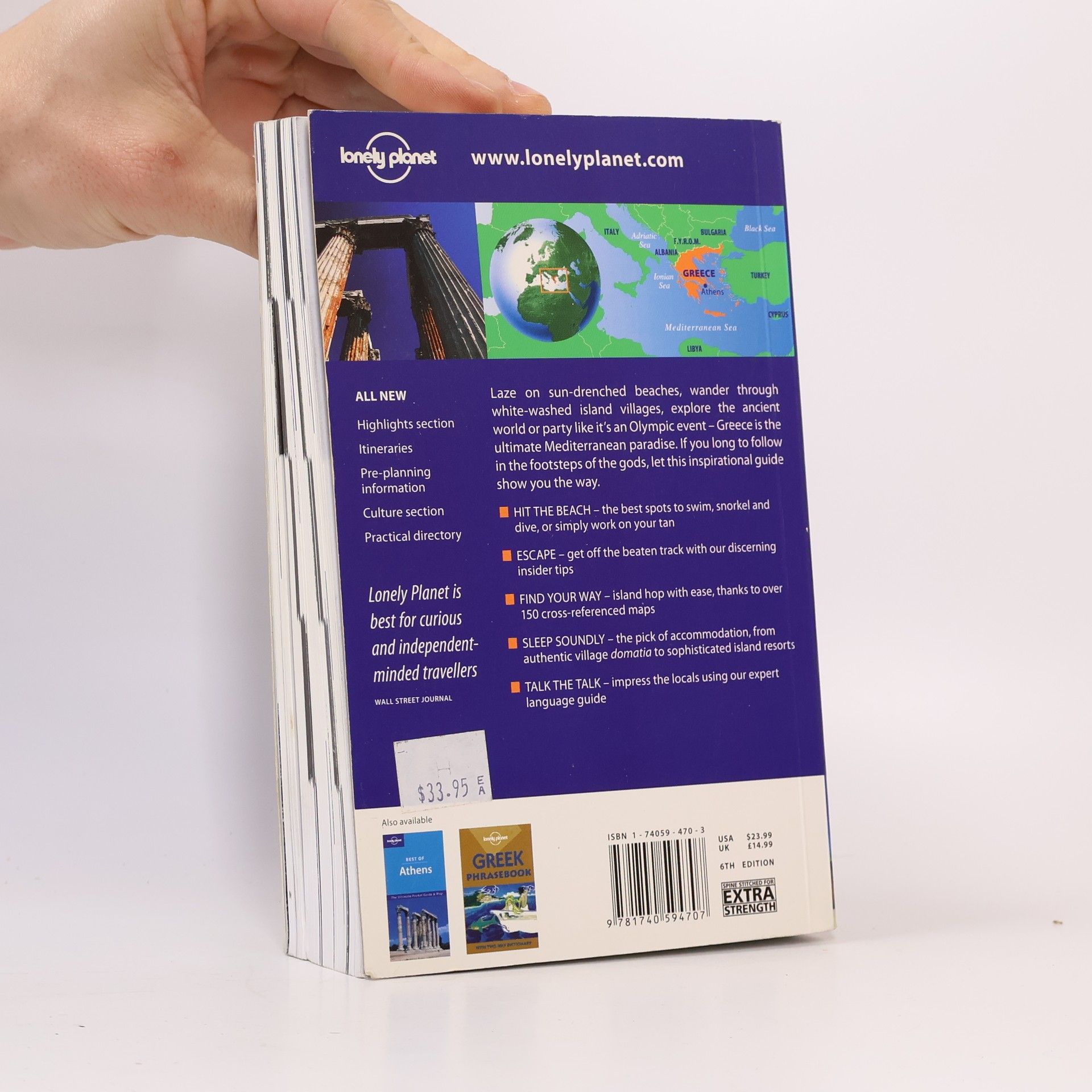 "Laze on sun-drenched beaches, wander through white-washed island villages, explore the ancient world or party like it's an Olympic event - Greece is the ultimate Mediterranean paradise. If you long to follow in the footsteps of the gods, let this inspirational guide show you the way." - back cover.