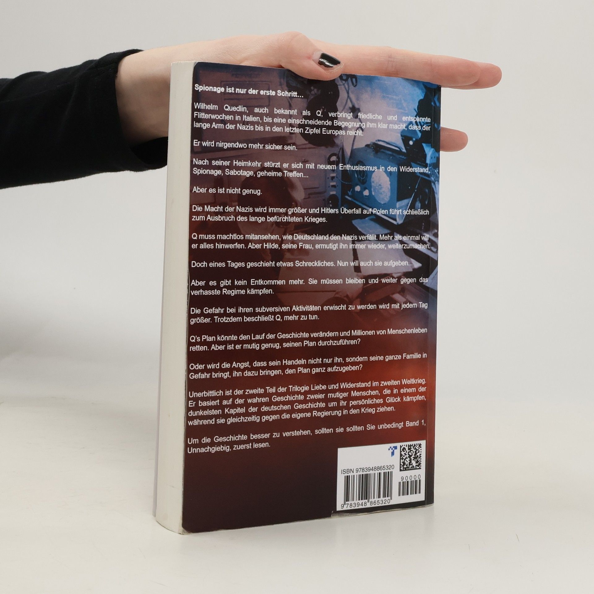 Wilhelm Quedlin, auch bekannt als Q, genießt seine Flitterwochen in Italien, bis er erkennt, dass die Nazis bis in die entlegensten Winkel Europas ihre Macht ausdehnen. Nach seiner Rückkehr engagiert er sich mit neuem Elan im Widerstand, doch die Bedrohung durch das NS-Regime wächst. Hitlers Überfall auf Polen führt zum Ausbruch des Krieges, und Q sieht hilflos zu, wie Deutschland den Nazis verfällt. Immer wieder denkt er daran, alles aufzugeben, doch seine Frau Hilde ermutigt ihn, weiterzukämpfen. Ein schreckliches Ereignis bringt jedoch auch sie an den Rand der Verzweiflung. Es gibt kein Entkommen mehr; sie müssen bleiben und gegen das Regime kämpfen. Die Gefahr, bei ihren subversiven Aktivitäten entdeckt zu werden, steigt täglich. Trotz der Risiken beschließt Q, einen mutigen Plan zu schmieden, der den Verlauf der Geschichte verändern und Millionen retten könnte. Doch wird er den Mut aufbringen, diesen Plan umzusetzen, oder wird die Angst um das Wohl seiner Familie ihn davon abhalten? Unerbittlich ist der zweite Teil der Trilogie über Liebe und Widerstand im Zweiten Weltkrieg, basierend auf der wahren Geschichte zweier mutiger Menschen, die in einem dunklen Kapitel der deutschen Geschichte für ihr Glück und gegen die eigene Regierung kämpfen. Um die Geschichte vollständig zu erfassen, sollte Band 1, Unnachgiebig, zuerst gelesen werden.