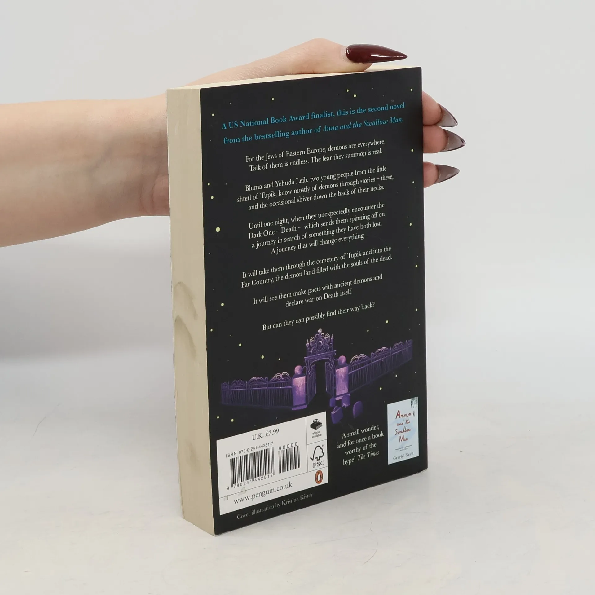 A US National Book Award Finalist, the second novel from the bestselling author of the acclaimed crossover novel, Anna and the Swallow Man. A dark fantasy adventure for fans of Neil Gaiman, Philip Pullman and The Book Thief. For the Jews of Eastern Europe, demons are everywhere. Talk of them is endless. The fear they summon is real. Bluma and Yehuda Leib, two young people from the little shtetl of Tupik, know mostly of demons through stories - these, and the occasional shiver down the back of their necks. Until one night, when they unexpectedly encounter the Dark One - Death - an encounter which sends them spinning off on a journey in search of something they have both lost. Theirs is a journey that will change everything. It will take them through the cemetery of Tupik and into the Far Country, the demon land filled with the souls of the dead. It will see them make pacts with ancient demons and declare war on Death itself. But can they can possibly find their way back?