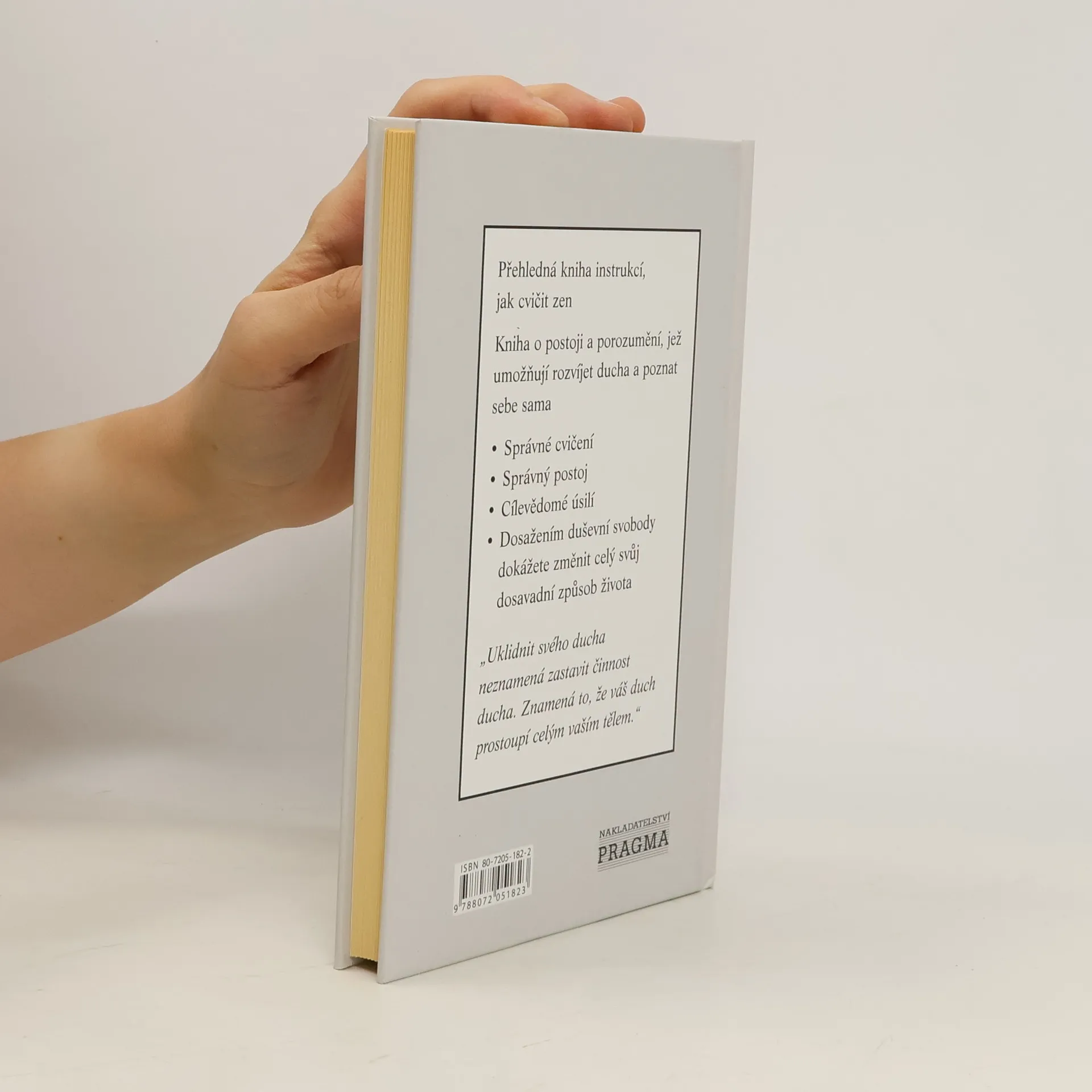 Přehledná kniha instrukcí, jak cvičit zen. Je to kniha o postoji a porozumění, jež umožňují rozvíjet ducha a poznat sebe sama. Naučí vás správnému cvičení, správnému postoji, cílevědomému úsilí. Dosažením svobody dokážete změnit celý svůj dosavadní způsob života. Kniha vznikla z prvotního souboru rozprav vedených zenovým mistrem Sunrju Suzuki v malé zenové skupině v Los Altos v Kalifornii. Suzuki uplatňuje neformální přístup, klade důraz na zdravý rozum a zen objasňuje na příkladech z každodenního života. Zen je ted a tady, jak říká. Zen má stejný význam pro Západ, jako pro Východ. Základní zásady jeho učení a praxe vycházejí ze stoleté tradice zenového budhismu a zejména z učení Dógena, jednoho z nejvýznamnějších zenových mistrů.