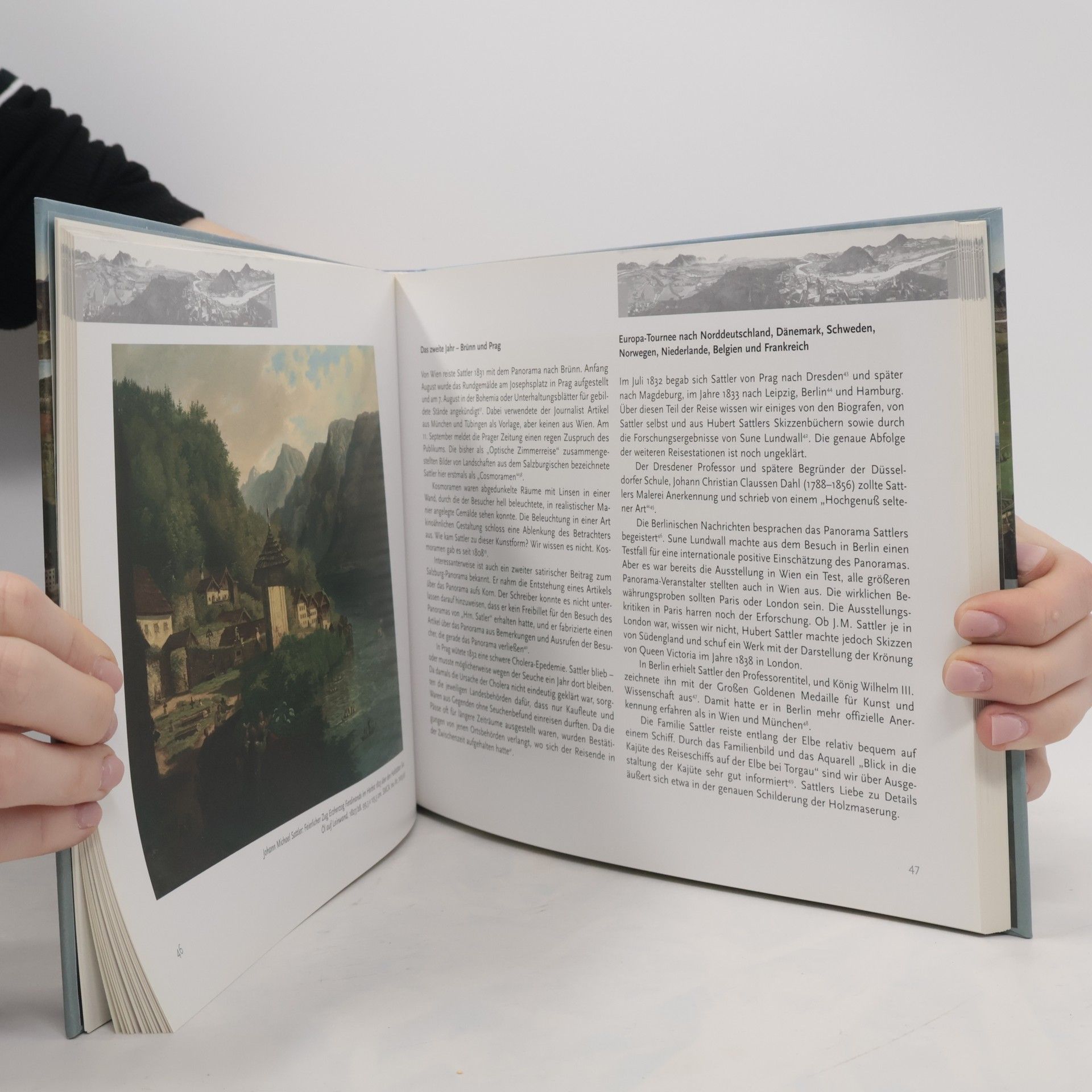 Ein Bild soweit das Auge reicht: das ist das Rundgemälde von Johann Michael Sattler (1786-1847), das einen Blick auf die Stadt Salzburg und ihre Umgebung um das Jahr 1829 gewährt. Der Anblick ist uns heute noch scheinbar vertraut, aber bei näherem Hinsehen hat sich doch einiges verändert. Die Darstellung zeichnet sich durch topografische Genauigkeit, vor allem im Bereich des bebauten Gebietes der Stadt, aus. Alle Fensterachsen, Kamine und Dachformen der Gebäude stimmen genau. Sattlers fotografische Genauigkeit gibt uns heute noch Einblicke in das Leben der Menschen der damaligen Zeit und in ihre Umgebung. Vom Rundblick von der Festung Hohensalzburg aus waren nicht nur die Betrachter der Biedermeierzeit hingerissen – auch heute noch fasziniert das Panorama Einheimische und Gäste Salzburgs.