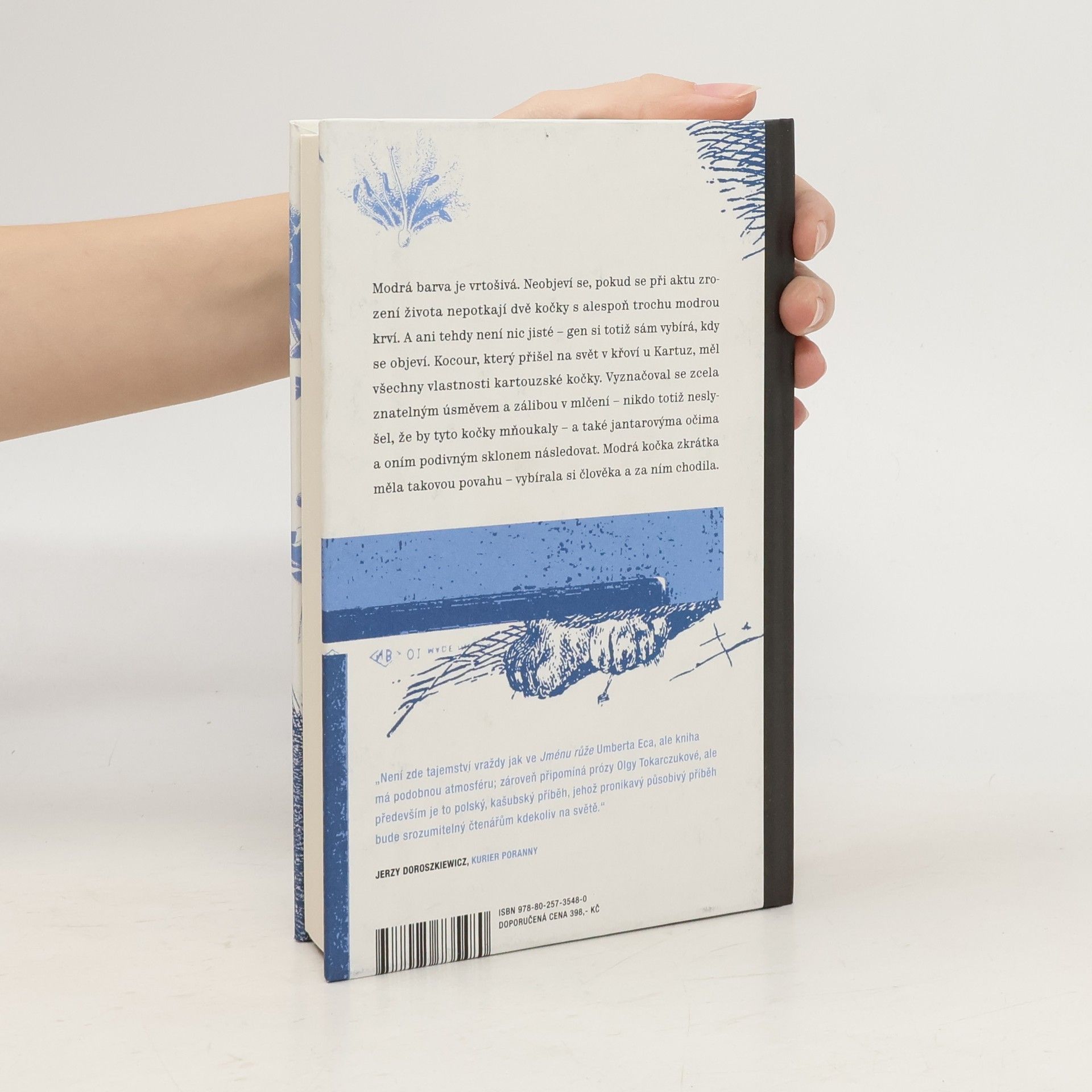 Nový román Martyny Bundy, autorky oceňovaného debutu Bezcitnost, zachovává epičnost vyprávění a nepostrádá ani výrazné postavy, které se tentokrát pohybují v časovém oblouku sedmi století na území mezi kašubskými jezery. Prolínají se zde světy sakrální a světské, spiritualita s racionálnem, osud postav je tiše sledován modrými kočkami, které ochraňují a hřejí ty, kteří to potřebují. Mnohovrstevnatý román dává život několika různorodým hrdinům, mnichům, jeptiškám, zahaleným tajemstvím, bábám bylinkářkám, silným ženám i chudákům. Druhý román Martyny Bundy jistě potěší milovníky kvalitní literatury a magického realismu. „Není možné přečíst knihu Martyny Bundy a zůstat k ní lhostejný. Jsem si jistá, že každý v ní objeví nějaký prvek, který ho bude zajímat. Ať už dobrodružství hrdinů, historické pozadí, nebo hluboké moudré poselství, které vybízí k zamyšlení.“ Beata Igielska
