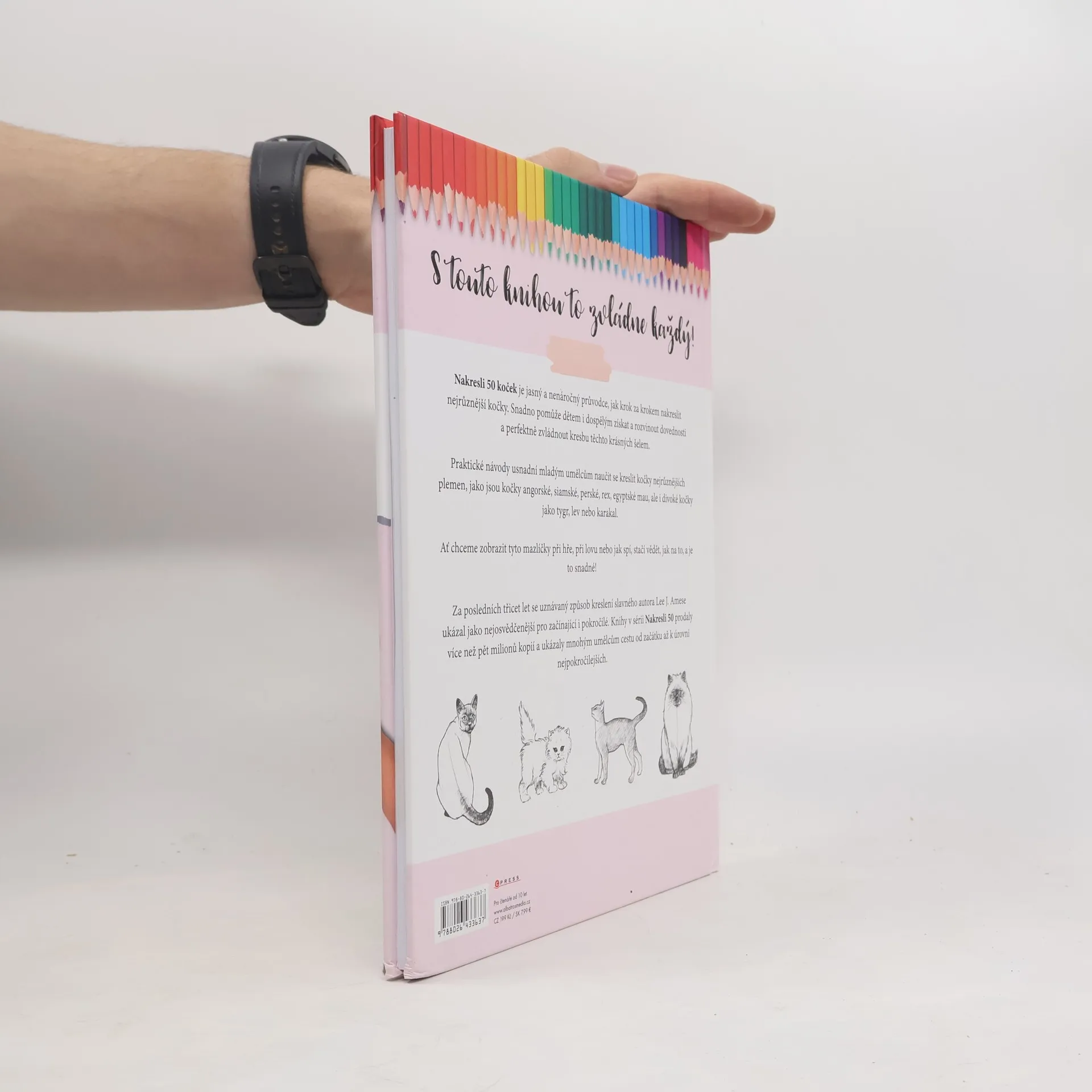 Nakresli 50 koček je jasný a nenáročný průvodce, jak krok za krokem nakreslit nejrůznější kočky. Snadno pomůže dětem i dospělým získat a rozvinout dovednosti a perfektně zvládnout kresbu těchto krásných šelem. Praktické návody usnadní mladým umělcům naučit se kreslit kočky nejrůznějších plemen, jako jsou kočky angorské, siamské, perské, rex, egyptské mau, ale i divoké kočky jako tygr, lev nebo karakal.