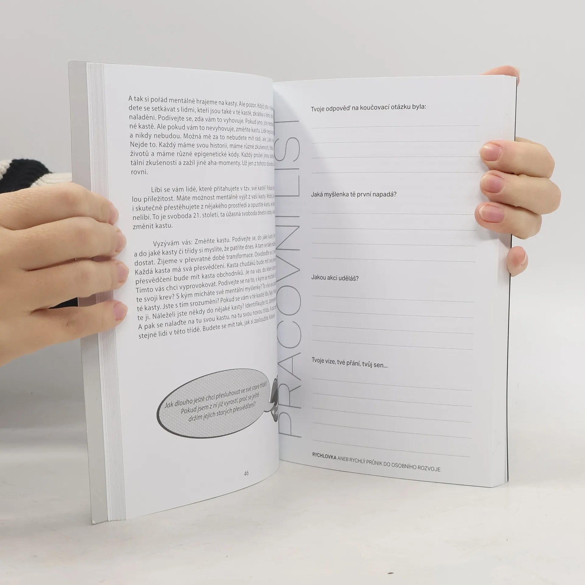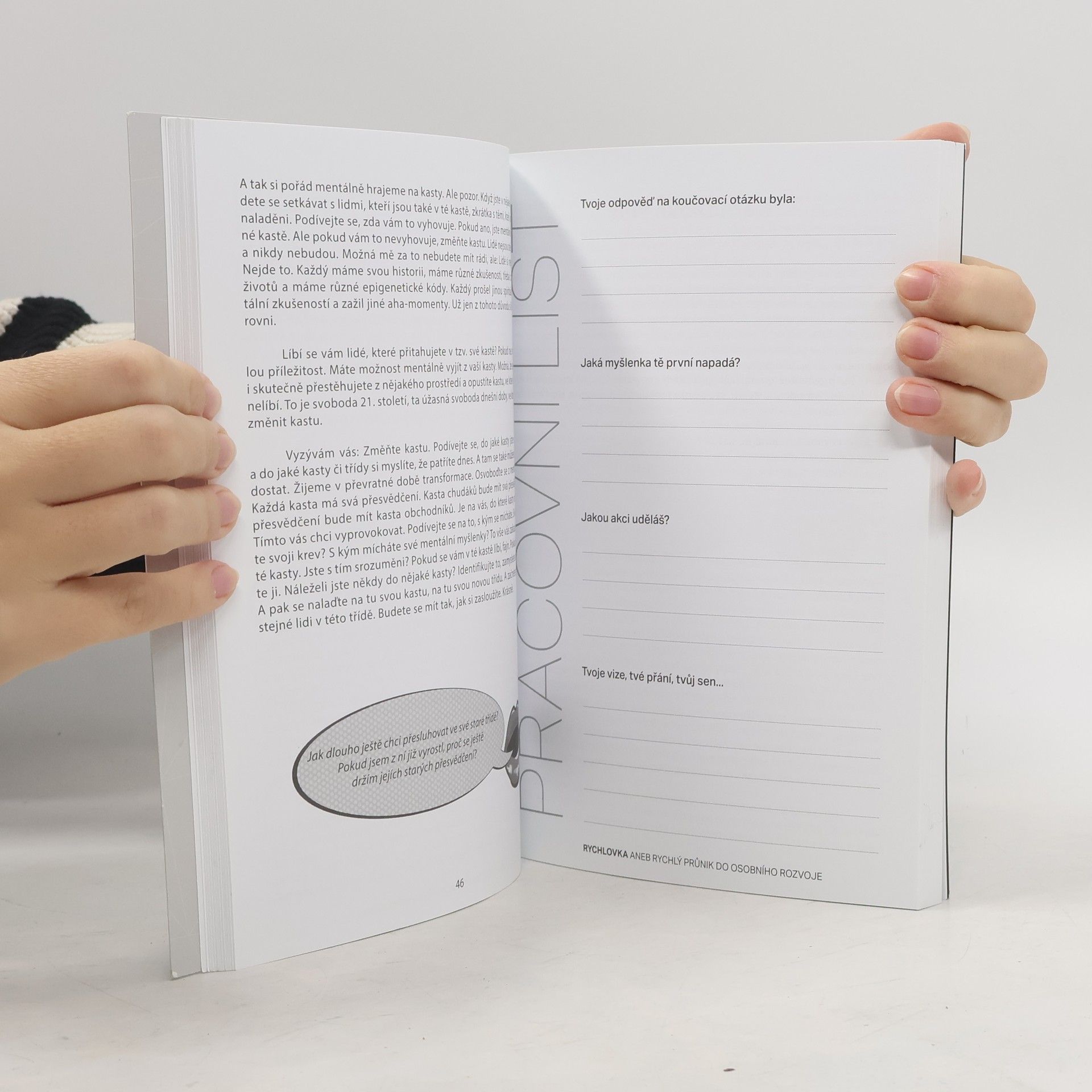Kniha Rychlovka aneb rychlý průnik do osobního rozvoje mapuje projekt autora Jiřího Vokáče Čmolíka pětiminutovka. Je dokázáno, že zaměření pouhých pět minut na vlastní osobu, zvyšuje pocity štěstí a úspěšnost jedince. Rychlovka shrnuje 50 motivačních pětiminutovek na různá životnítémata. Každá kapitola je doprovázena koučovací otázkou a pracovním listem, kde si lidé zaznamenávají své pocity, odpovědi, vize. Časem se Rychlovka stává jejich pamětí nápadů a přání. je