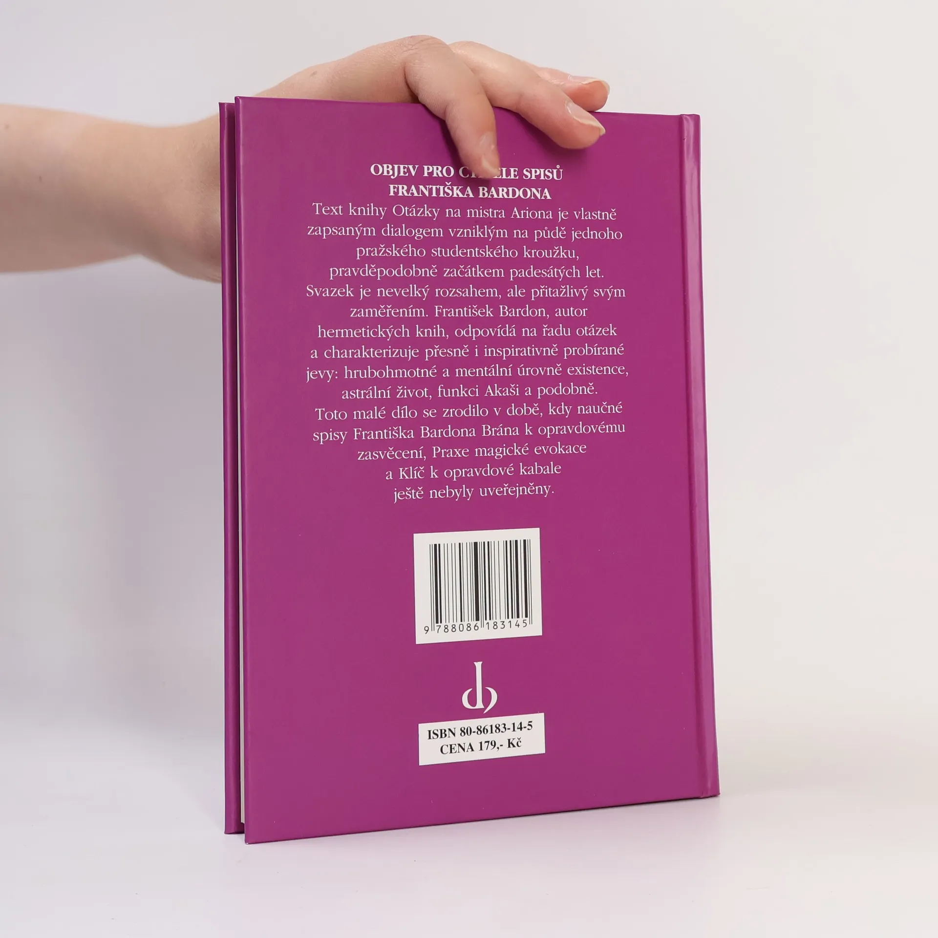 Text knihy Otázky na mistra Ariona je vlastně zapsaným dialogem vzniklým na půdě jednoho pražského studentského kroužku, pravděpodobně začátkem padesátých let. Svazek je nevelký rozsahem, ale je přitažlivý svým zaměřením. František Bardon, autor hermetických knih, odpovídá na řadu otázek a charakterizuje přesně i inspirativně probírané jevy: hrubohmotné a mentální úrovně existence, astrální život, funkci Akaši a podobně. Toto malé dílo se zrodilo v době, kdy naučné spisy Františka Bardona 'Brána k opravdovému zasvěcení', 'Praxe magické evokace' a 'Klíč k opravdové kabala' ještě nebyly uvěřejněny.