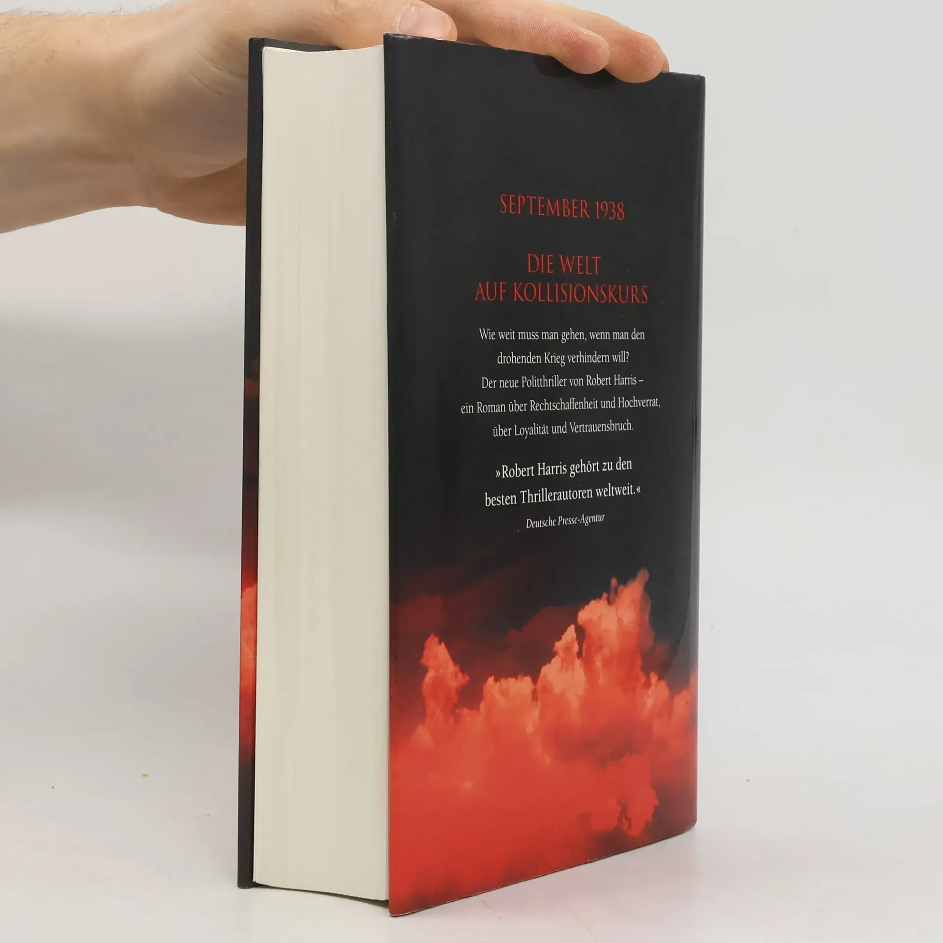 September 1938 – in München treffen sich Hitler, Chamberlain, Mussolini und Daladier zu einer kurzfristig einberufenen Konferenz. Der Weltfrieden hängt am seidenen Faden. Im Gefolge des britischen Premierministers Chamberlain befindet sich Hugh Legat aus dem Außenministerium, der ihm als Privatsekretär zugeordnet ist. Auf der deutschen Seite gehört Paul von Hartmann aus dem Auswärtigen Amt in Berlin zum Kreis der Anwesenden. Den Zugang zur Delegation hat er sich erschlichen. Insgeheim ist er Mitglied einer Widerstandszelle gegen Hitler. Legat und von Hartmann verbindet eine Freundschaft, seit sie in Oxford gemeinsam studiert haben. Nun kreuzen sich ihre Wege wieder. Wie weit müssen sie gehen, wenn sie den drohenden Krieg verhindern wollen? Der neue Politthriller von Robert Harris – ein Roman über Hochverrat und Unbestechlichkeit, über Loyalität und Vertrauensbruch. Und wie immer bei Robert Harris lassen sich über die historischen Figuren und Ereignisse erhellende Bezüge zur aktuellen Weltpolitik herstellen.