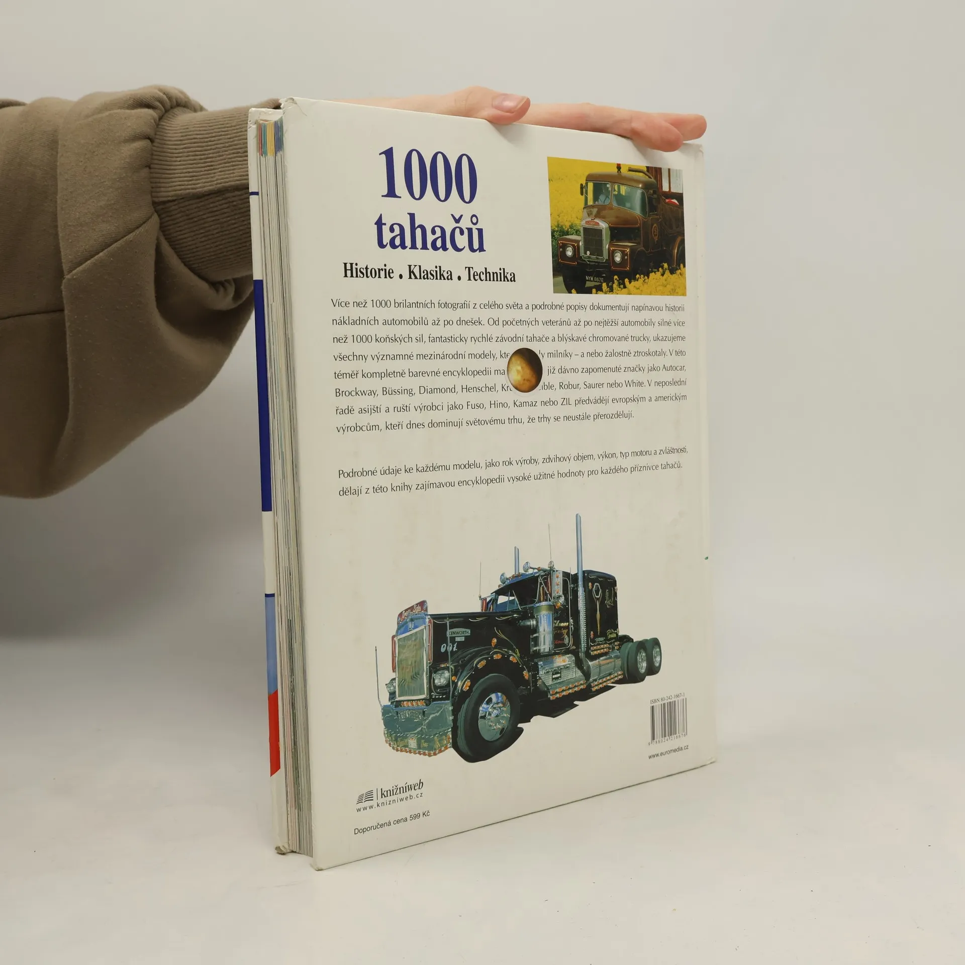 Více než 1000 brilantních fotografií z celého světa a podrobné popisy dokumentují napínavou historii nákladních automobilů až po dnešek. Od početných veteránů až po nejtěžší automobily silné více než 1000 koňských sil, fantasticky rychlé závodní tahače a blýskavé chromované trucky, ukazujeme všechny významné mezinárodní modely, které se staly milníky - a nebo žalostně ztroskotaly. V této téměř kompletně barevné encyklopedii mají své místo již dávno zapomenuté značky jako Autocar, Brockway, Büssing, Diamond, Henschel, Krupp, Kaelble, Robur, Saurer nebo White. V neposlední řadě asijští a ruští výrobci jako Fuso, Hino, Kamaz nebo ZIL předvádějí evropským a americkým výrobcům, kteří dnes dominují světovému trhu, že trhy se neustále přerozdělují.