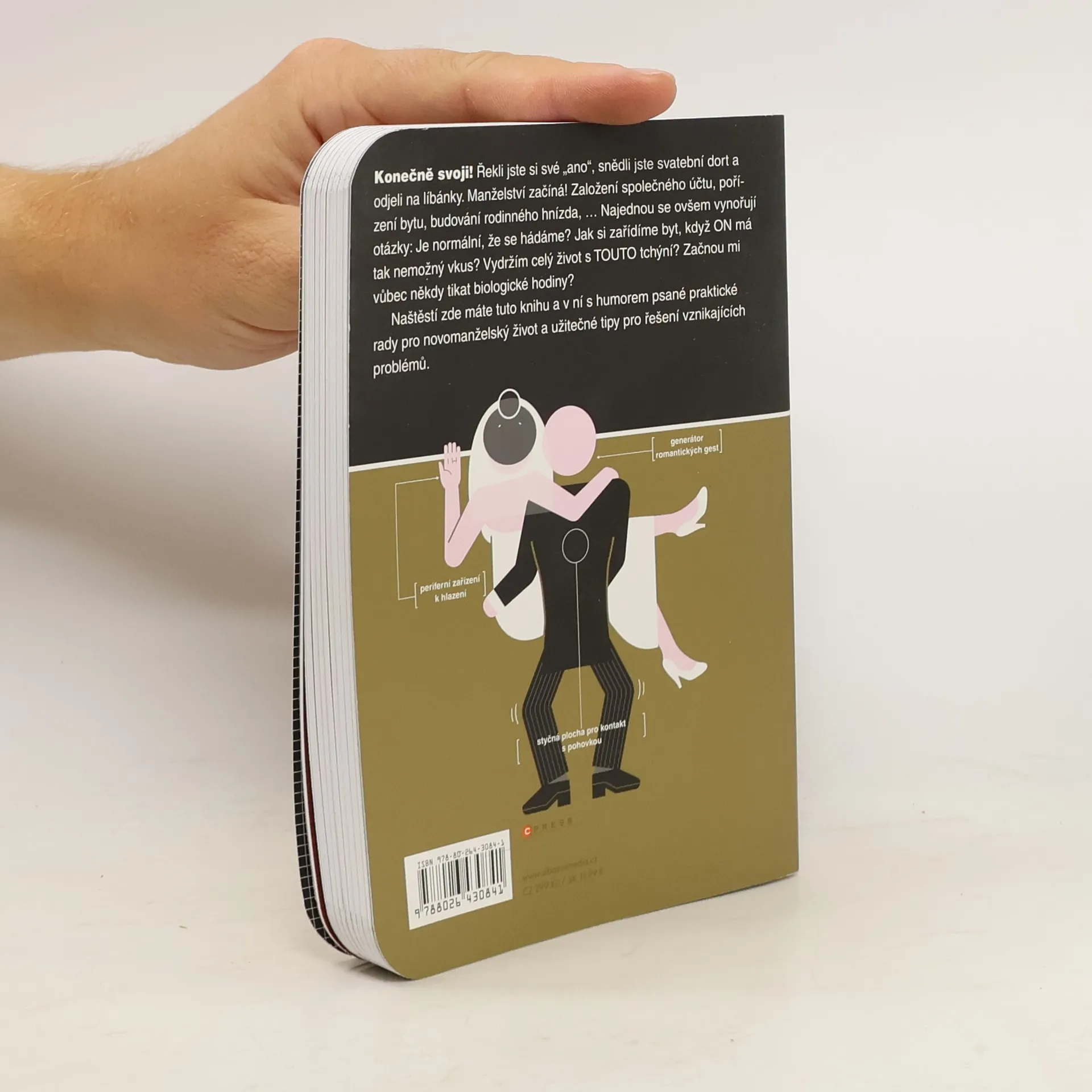 Konečně svoji! Řekli jste si své „ano“, snědli jste svatební dort a odjeli na líbánky. Manželství začíná! Založení společného účtu, pořízení bytu, budování rodinného hnízda, ... Najednou se ovšem vynořují otázky: Je normální, že se hádáme? Jak si zařídíme byt, když ON má tak nemožný vkus? Vydržím celý život s TOUTO tchýní? Začnou mi vůbec někdy tikat biologické hodiny? Naštěstí zde máte tuto knihu a v ní s humorem psané praktické rady pro novomanželský život a užitečné tipy pro řešení vznikajících problémů.