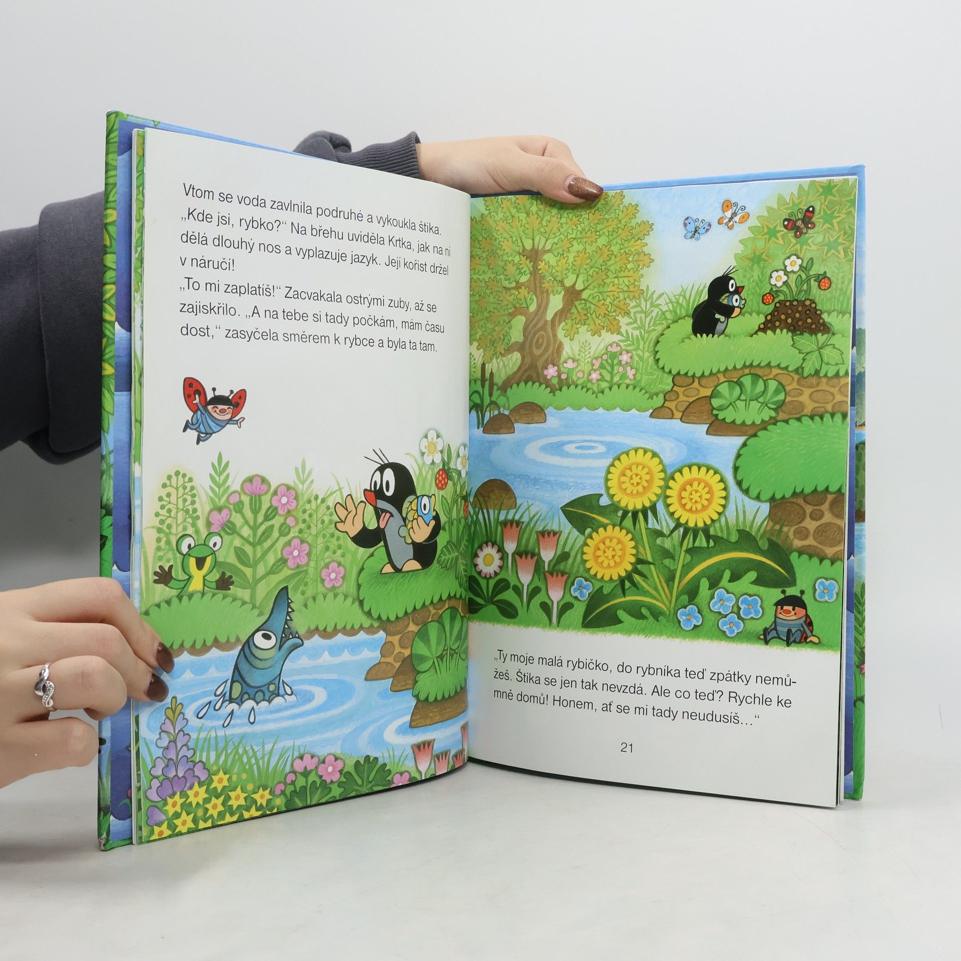 Milé děti, po osmi letech k vychází z brusu nová knížka o Krtkovi. Tentokrát zachrání malou roztomilou rybku před dravou zubatou štikou. A není na to sám, jsou s ním jeho oblíbení kamarádi mravenečci, žabka, motýlek admirál, housenka, šneček, žížalky a další. Rybka se dokonce schová u Krtka doma. A jak se mu odmění? Jak jinak, nežli kouzelně. Tak otevřete knížku a vejděte do Krtkova pohádkového světa.