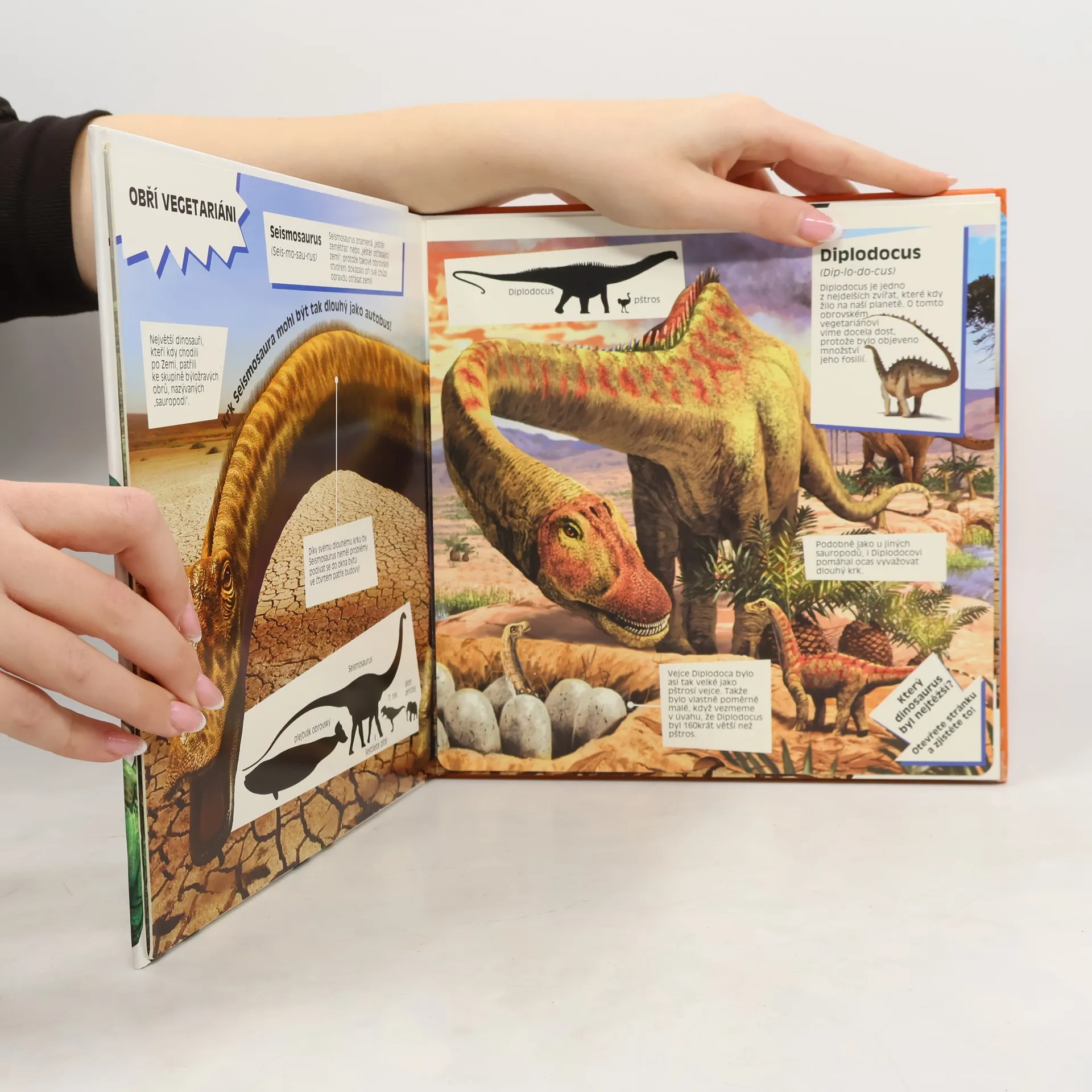 Nechte své děti při čtení této knihy odcestovat zpátky do časů, kdy planetě vládli velicí a děsiví dinosauři. Na snadno rozkládatelných stránkách si přečtou o největších a nejzvláštnějších zajímavostech těchto ohromných bytostí. Knížka obsahuje faktické, barevné obrázky a některé z nich jsou dokonce i v životních velikostech. Můžete si tak sami změřit, jak by vaše ruka třeba vypadala oproti drápu Velociraptora.