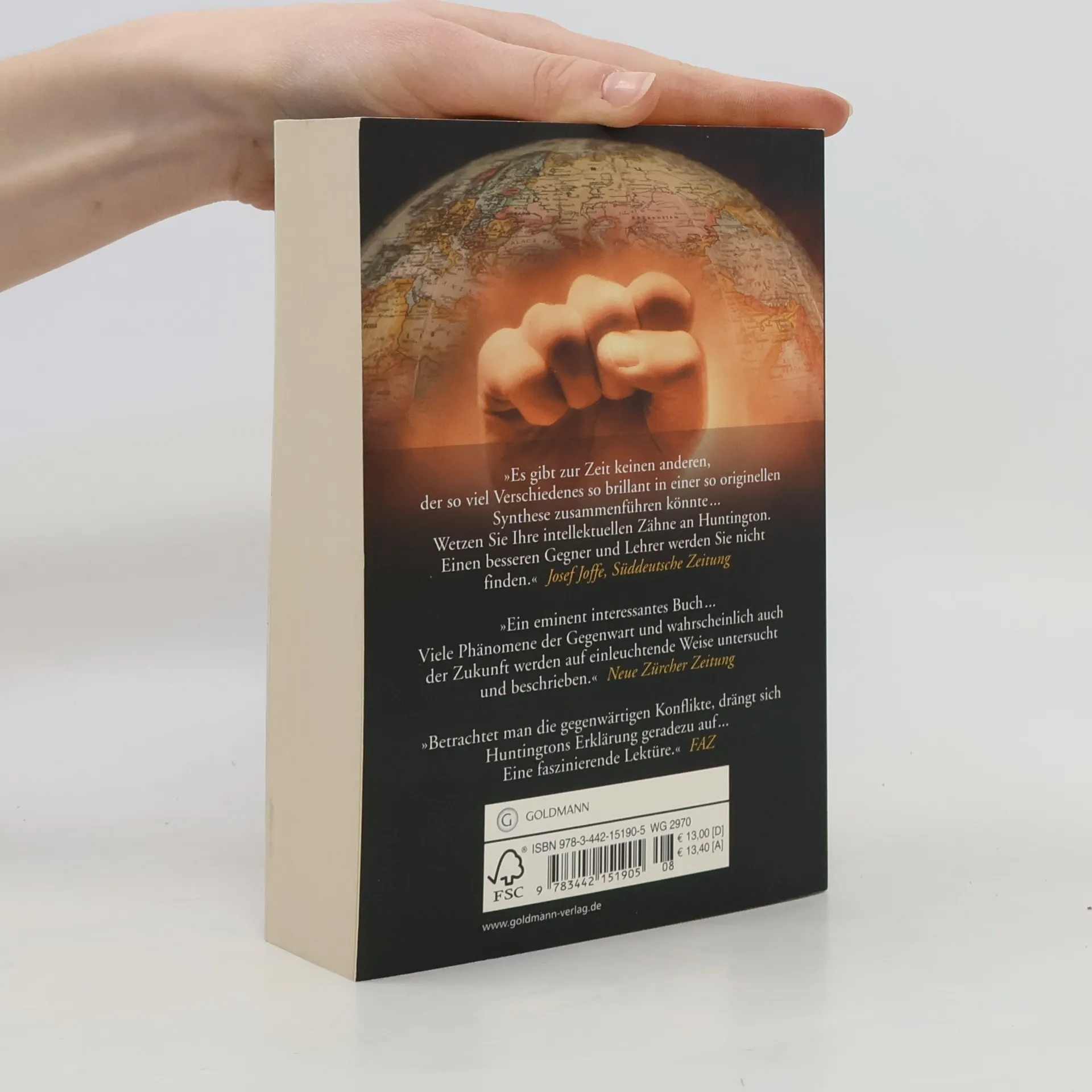 Der amerikanische Politikwissenschaftler Samuel P. Huntington stellt in seinem Buch die Frage nach den weltpolitischen Entwicklungen im 21. Jahrhundert. Statt eines harmonischen Zusammenwachsens in einer zunehmend vernetzten Welt sieht er neue Konflikte globalen Ausmaßes entstehen: Konflikte zwischen den Kulturen. Die Weltpolitik des 21. Jahrhunderts wird nicht mehr von Auseinandersetzungen ideologischer oder wirtschaftlicher Natur bestimmt sein, so Huntingtons These, sondern vom Konflikt zwischen Völkern und Volksgruppen unterschiedlicher kultureller Zugehörigkeit. Der Faktor Kultur wird folglich in der internationalen Politik massiv an Bedeutung gewinnen. Mit „Clash of Civilisations“ hat Huntington eine neue Formel für die künftige Weltordnung formuliert. Provokant, spannend und international heftig diskutiert – ein Muss für jeden politisch interessierten Leser. Ausstattung: s/w-Abb./Tab./Karten