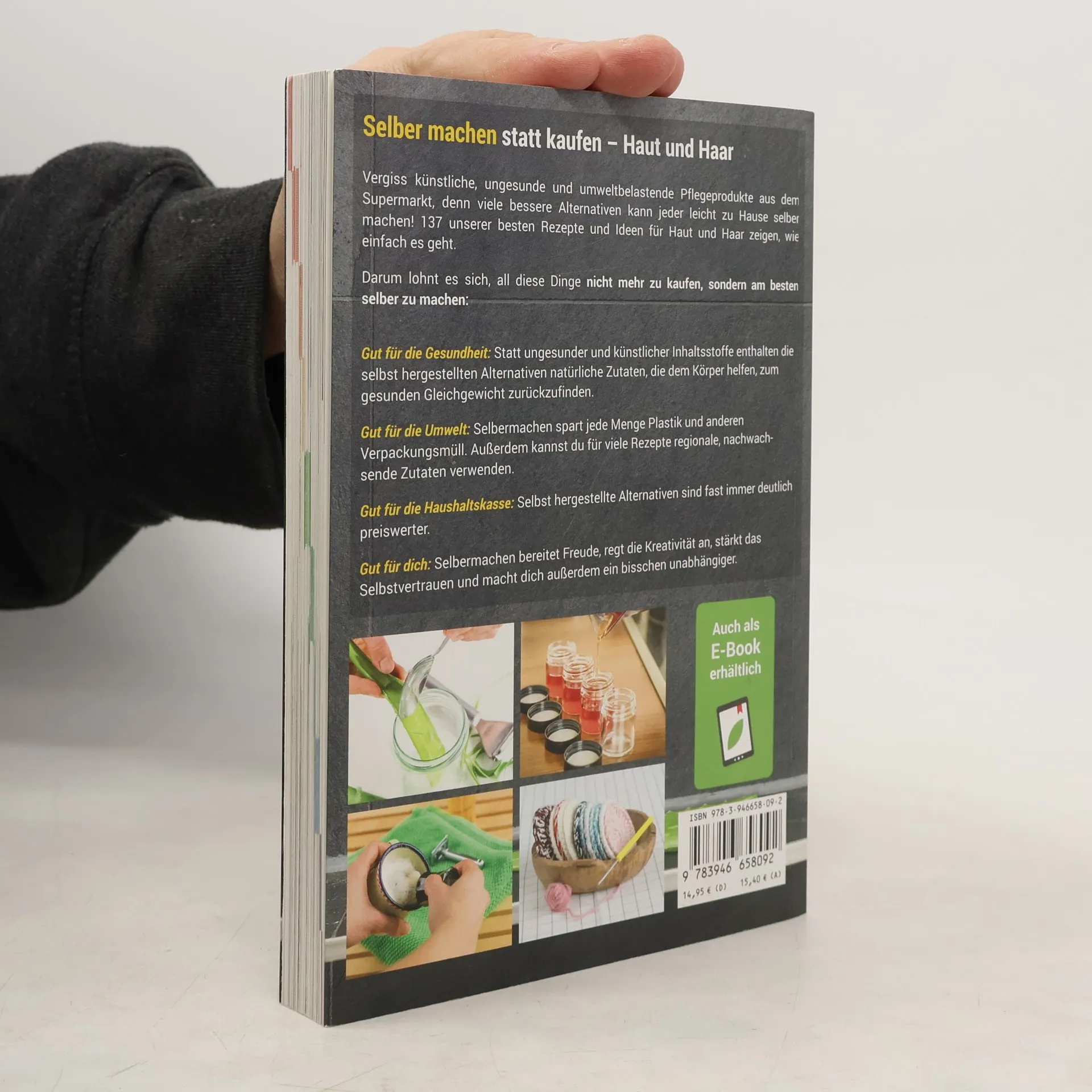 Vergiss künstliche, ungesunde und umweltbelastende Pflegeprodukte aus dem Supermarkt, denn viele bessere Alternativen kann jeder leicht zu Hause selber machen! 137 unserer besten Rezepte und Ideen für Haut und Haar zeigen, wie einfach es geht. Darum lohnt es sich, all diese Dinge nicht mehr zu kaufen, sondern am besten selber zu machen: Gut für die Gesundheit: Statt ungesunder und künstlicher Inhaltsstoffe enthalten die selbst hergestellten Alternativen natürliche Zutaten, die dem Körper helfen, zum gesunden Gleichgewicht zurückzufinden, anstatt ihn von synthetischer Pflege immer abhängiger zu machen. Gut für die Umwelt: Selbermachen spart jede Menge Plastik und anderen Verpackungsmüll. Außerdem kannst du für viele Rezepte regionale, nachwachsende Zutaten verwenden. Gut für die Haushaltskasse: Selbst hergestellte Alternativen sind fast immer deutlich preiswerter. Gut für dich: Selbermachen bereitet Freude, regt die Kreativität an, stärkt das Selbstvertrauen und macht dich außerdem ein bisschen unabhängiger.