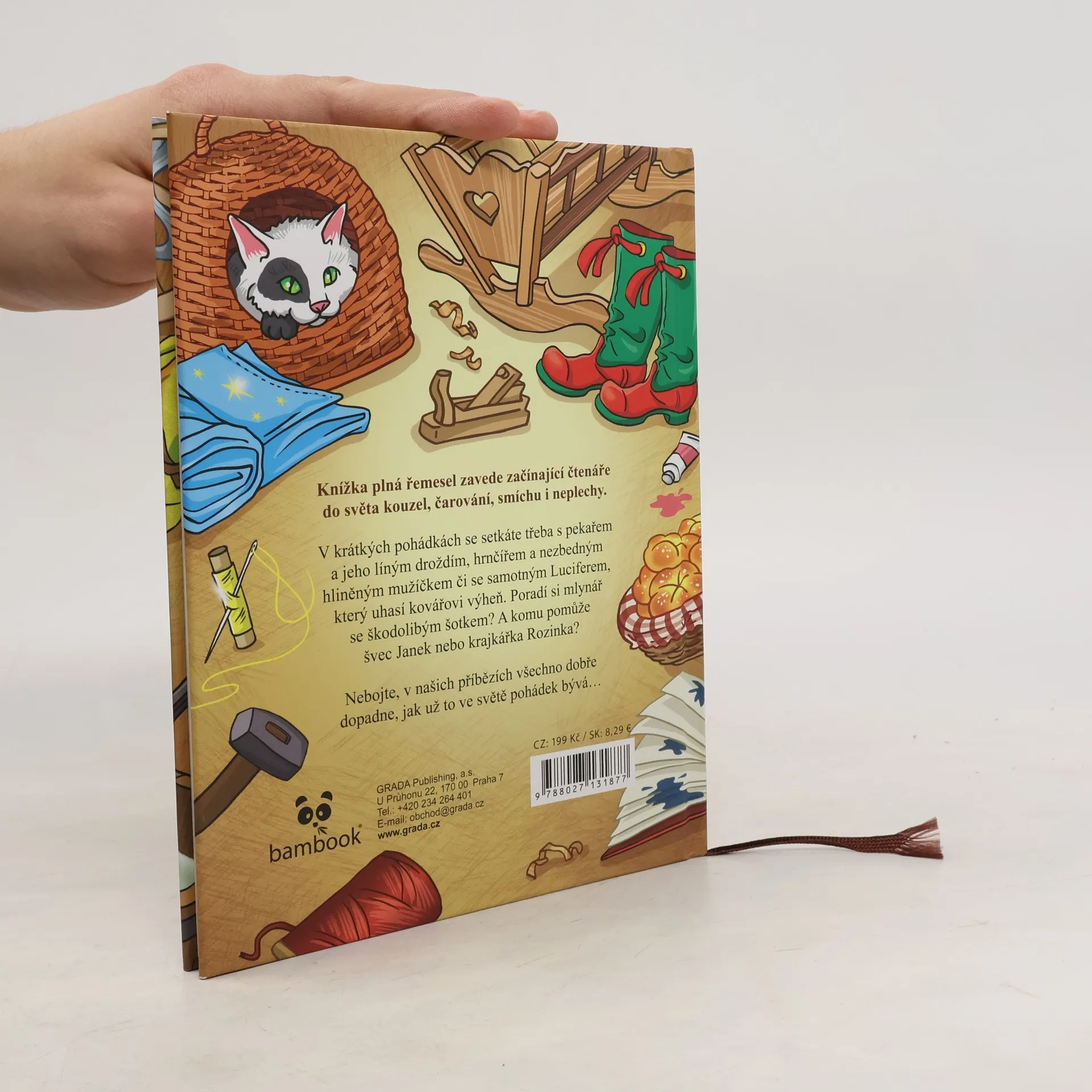 Knížka plná řemesel zavede začínající čtenáře do světa kouzel, čarování, smíchu i neplechy. V krátkých pohádkách se setkáte třeba s pekařem a jeho líným droždím, hrnčířem a nezbedným hliněným mužíčkem či se samotným Luciferem, který uhasí kovářovi výheň. Poradí si mlynář se škodolibým šotkem? A komu pomůže švec Janek nebo krajkářka Rozinka? Nebojte, v našich příbězích všechno dobře dopadne, jak už to ve světě pohádek bývá…