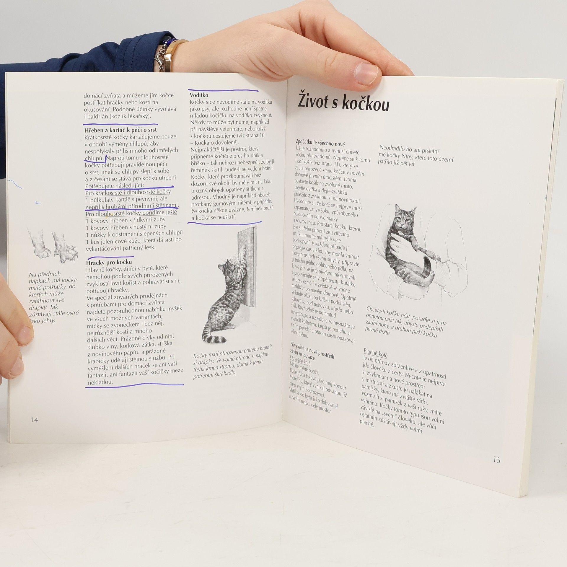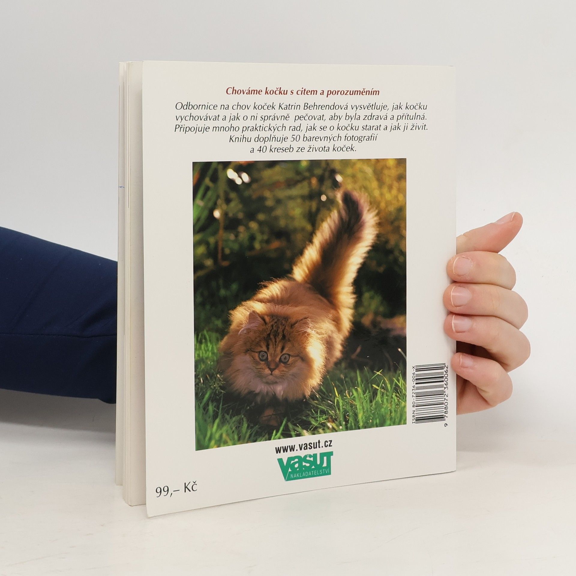 Kniha poskytuje dostatek informací každému, kdo si chce domů pořídit kočku. Odbornice na chov koček Katrin Behrendová vysvětluje, jak kočku vychovávat a jak o ni správně pečovat, aby byla zdravá a přítulná. Připojuje mnoho praktických rad, jak se o kočku starat a jak ji živit. Knihu doplňuje 50 barevných fotografií a 40 kreseb ze života koček.