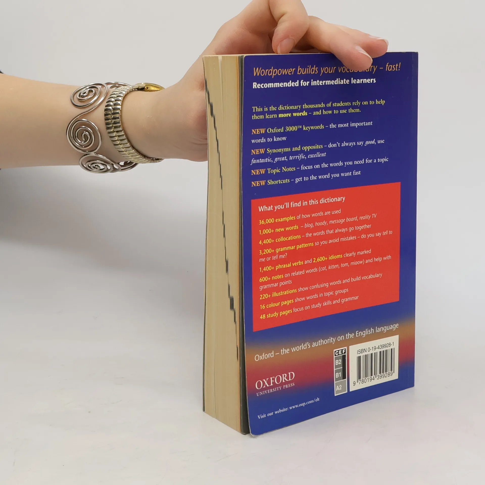 Oxford 3000™ keyword entries show students the most important words to know in English 'Other Words for' notes give synonyms and opposites to bring variety to students' language Topic Notes give the language and information to talk confidently about topics such as mobile phones, films, the internet, etc Shortcuts take students quickly to the meaning they want