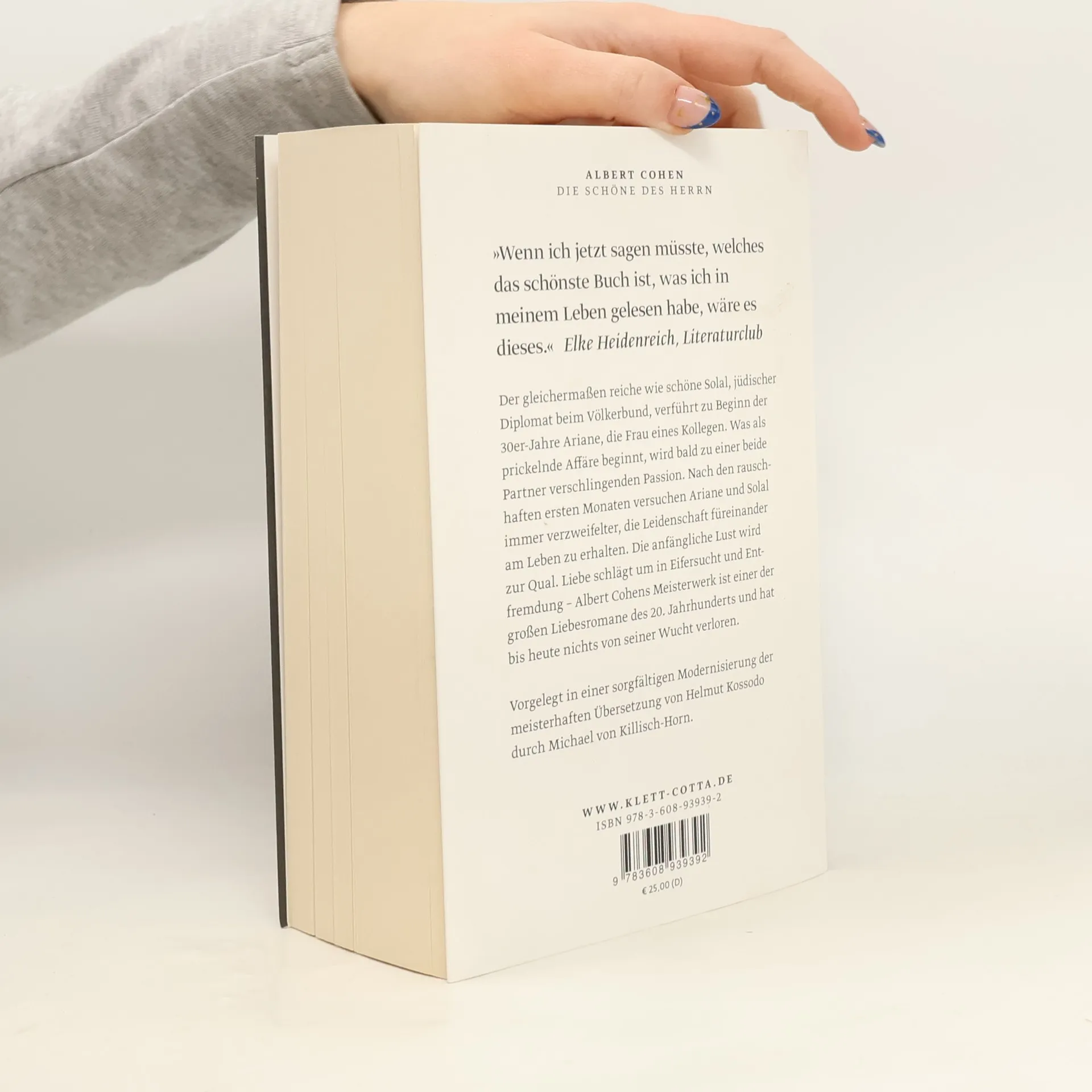 »Wenn ich jetzt sagen müsste, welches das schönste Buch ist, was ich in meinem Leben gelesen habe, wäre es dieses.« Elke Heidenreich, SF Literaturclub, 16.10.2012 »Ein verstörender Roman von großer erotischer Kraft ... etwas Kitsch wetterleuchtet darüber hin, was den Genuss keinesfalls beeinträchtigt, ihn sogar erhöht. Im Kern ungeheuerlich: der Untergang des europäischen Judentums gespiegelt in einer verzweifelten Affäre.« Sibylle Lewitscharoff Der reiche und schöne Solal, jüdischer Diplomat beim Völkerbund, verführt zu Beginn der 30erJahre Ariane, die Frau eines Kollegen. Was als prickelnde Affäre beginnt, wird rasch zu einer beide Partner verschlingenden Passion. Nach den lustvollen und rauschhaften ersten Monaten versuchen Ariane und Solal immer verzweifelter, die Leidenschaft füreinander am Leben zu erhalten. Die anfängliche Lust wird zur Qual. Liebe schlägt um in Eifersucht und Entfremdung. Albert Cohens Meisterwerk ist einer der größten Liebesromane des 20. Jahrhunderts und hat bis heute nichts von seiner Wucht verloren.