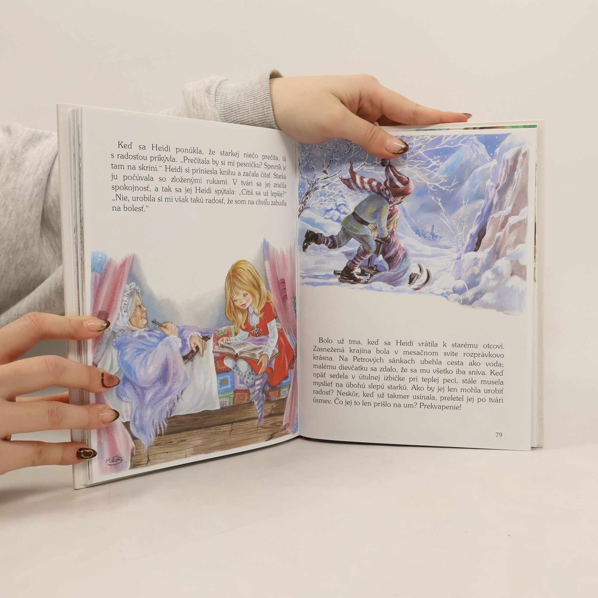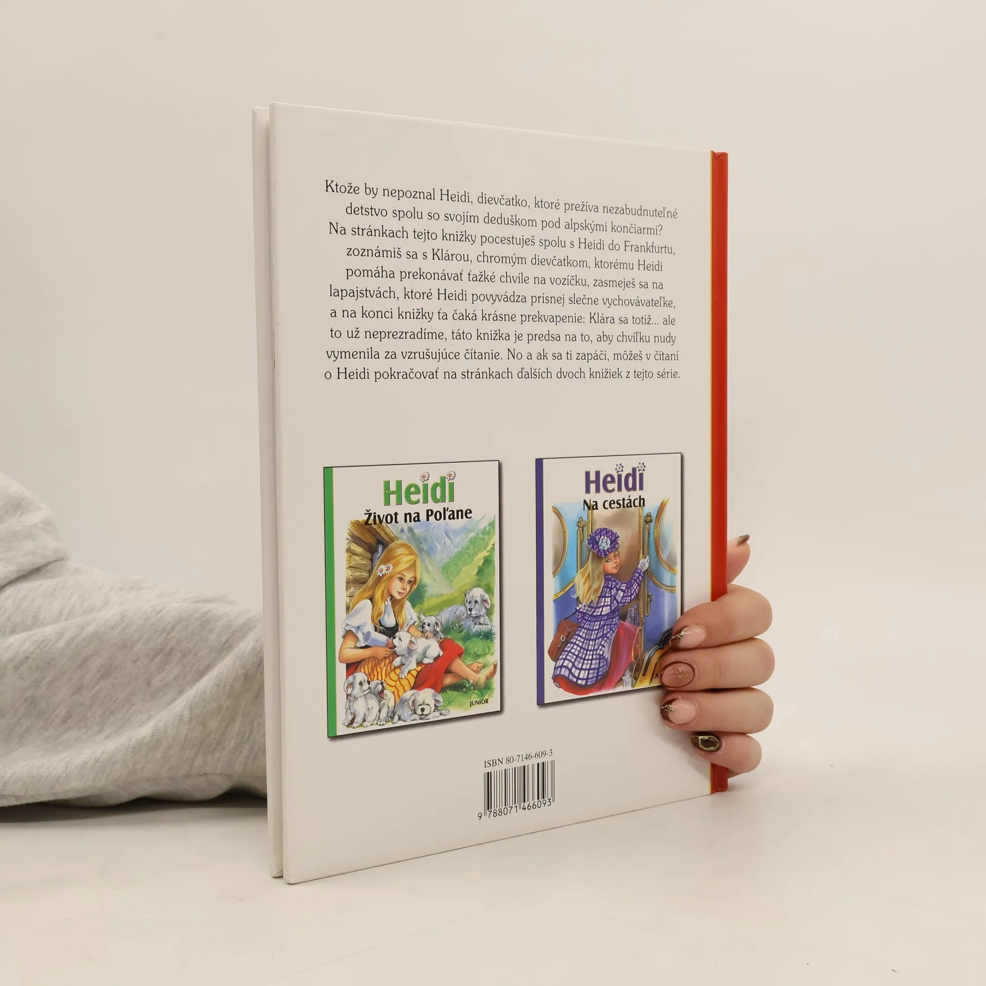 Ktože by nepoznal Heidi, dievčatko, ktoré prežíva nezabudnuteľné detstvo spolu so svojím deduškom pod alpskými končiarmi?Na stránkach tejto knižky pocestuješ spolu s Heidi do Frakfurtu, zoznámiš sa s Klárou, chromým dievčatkom, ktorému Heidi pomáha prekonávať ťažké chvíle na vozíčku, zasmeješ sa na lapajstvách, ktoré Heidi povyvádza prísnej slečne vychovávateľke, a na konci knižky ťa čaká krásne Klára sa totiž... ale to už neprezradíme, táto knižka je predsa na to, aby chvíľku nudy vymenila za vzrušujúce čítanie. A ak sa ti zapáči, môžeš v čítaní pokračovať na stránkach ďalších dvoch knižiek z tejto série.