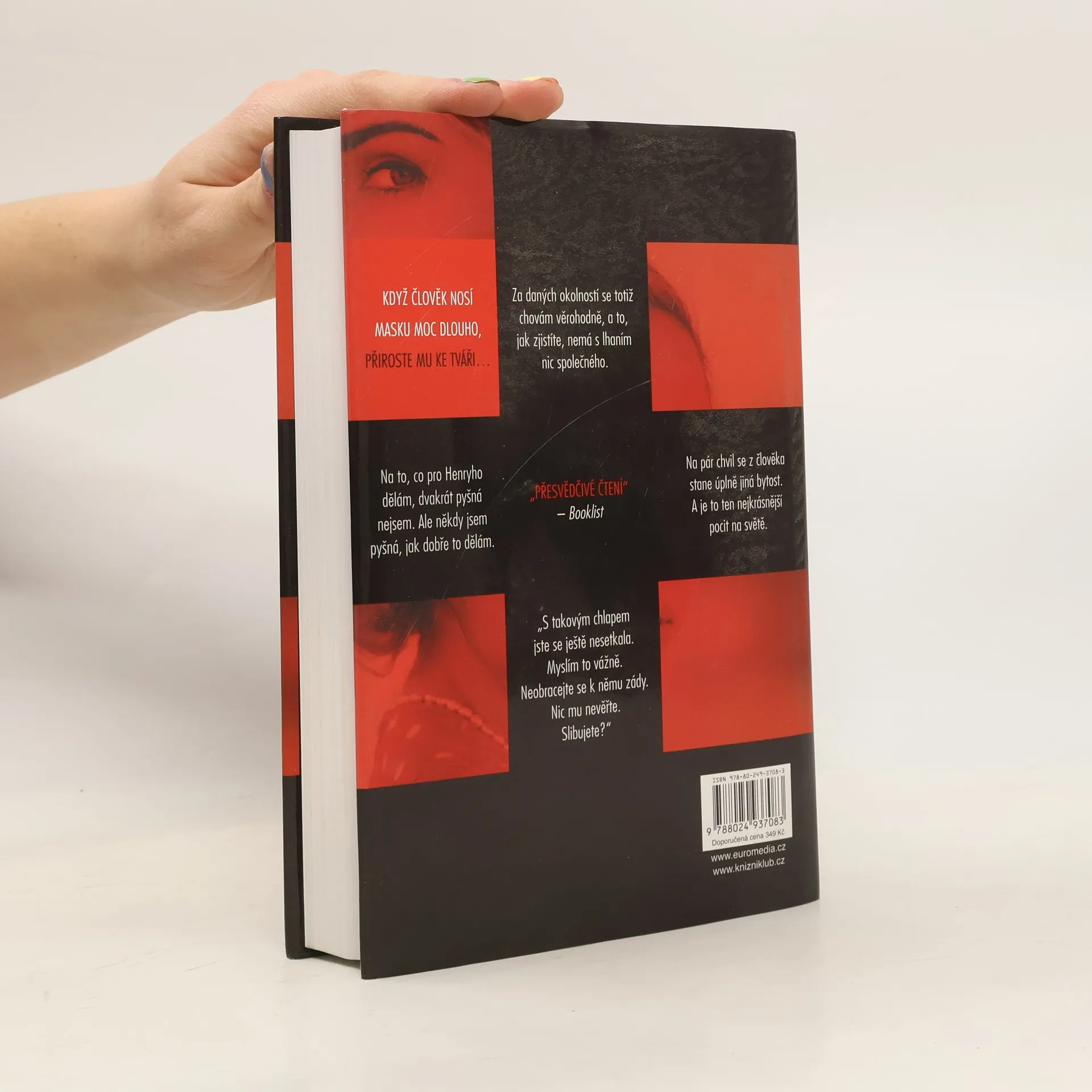 Když člověk nosí masku moc dlouho, přiroste mu ke tváři… Temný psychologický thriller od autora loňského bestselleru Ta přede mnou! Mladá ctižádostivá herečka Claire zoufale potřebuje práci a peníze, proto se rozhodne přijmout nabídku stejně tak amorální jako nebezpečnou – má být jakousi volavkou právnické firmy specializující se na rozvodové pře. Jejím úkolem je svést ženatého muže, vše zdokumentovat a důkazy posléze předat „podvedené“ manželce, aby je mohla použít u soudu. Jenomže potom je žena jednoho z jejích cílů nalezena mrtvá a Claire se stává hlavní podezřelou. O pár měsíců později je však stejnými vyšetřovateli naopak požádána o pomoc. Policie chce, aby se vetřela do života manžela zavražděné – tedy jediného muže, jehož se jí svést nepodařilo. Se svou rolí se však sžije až příliš dokonale…