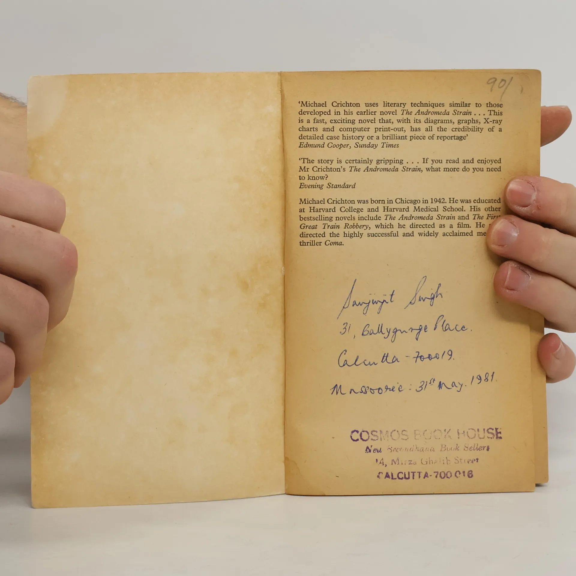 A man suffering from violent seizures enters a Los Angeles hospital, where soothing pulses are sent into his brain. But then he discovers how to get the pulses with increasing frequency, escapes from the hospital, and lapses into murderous rampages. By the author of Jurassic Park .