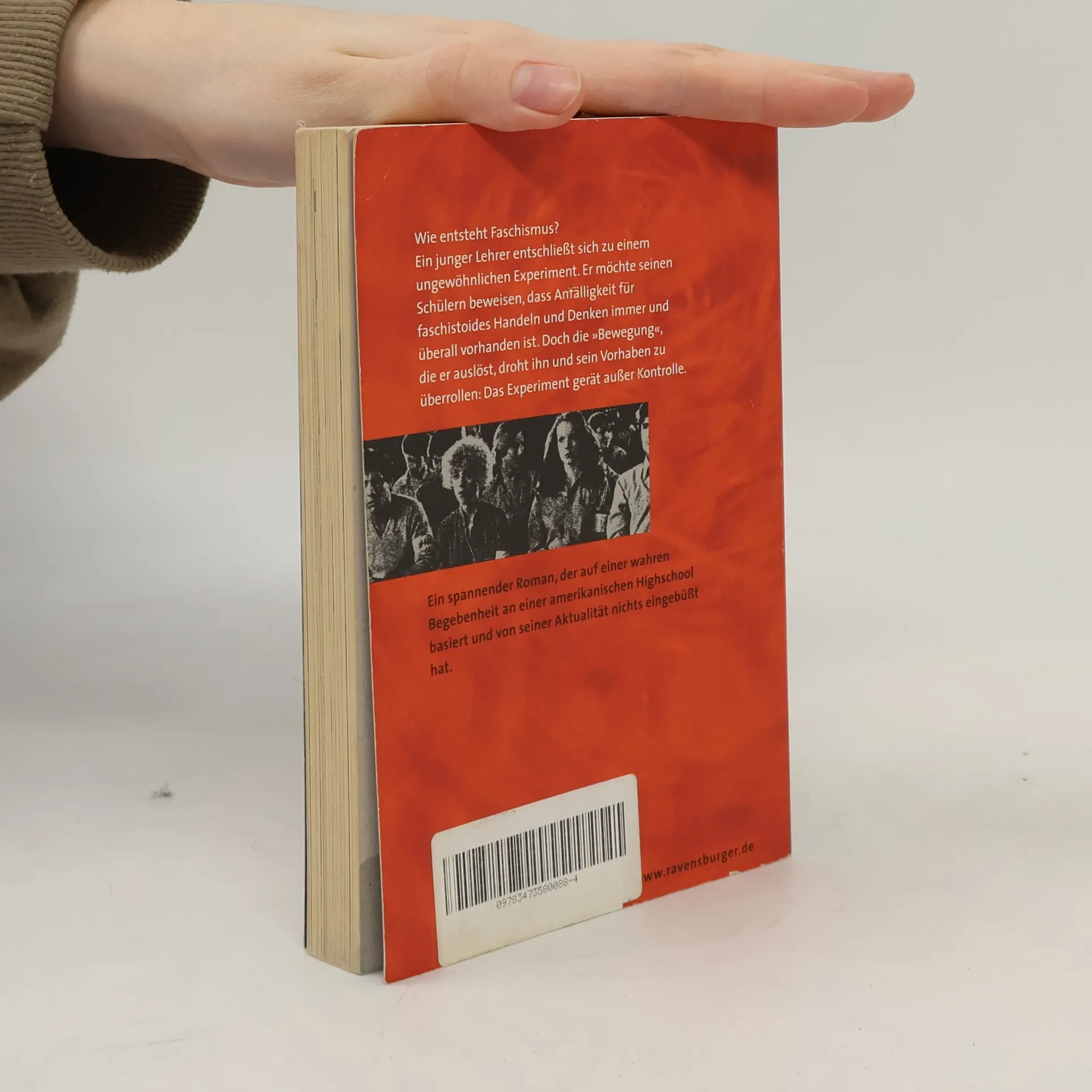 Der Jugendbuchbestseller zum Thema Rechtsextremismus, Faschismus und Nationalsozialismus Wie entsteht Faschismus? Als es im Geschichtsunterricht um Nationalsozialismus und Rechtsextremismus geht, beschließt ein junger Lehrer, ein ungewöhnliches Experiment durchzuführen. Er möchte seinen Schülern beweisen, dass Anfälligkeit für faschistoides Handeln und Denken nicht etwas ist, das nur andere Menschen betrifft – Faschismus ist hier mitten unter uns und in jedem von uns. Doch die „Bewegung“, die er auslöst, droht ihn und sein Vorhaben zu überrollen: Das Experiment gerät außer Kontrolle. Wichtig für den Schulunterricht: Seitenzählung unverändert! Morton Rhues Klassiker DIE WELLE beschreibt eindringlich und gegenwartsbezogen wie leicht Menschen verführt, manipuliert und instrumentalisieren werden können. Der Roman basiert auf wahren Begebenheiten an einer Highschool im kalifornischen Palo Alto. Zu diesem Buch gibt es „Materialien zur Unterrichtspraxis“ der Ravensburger Verlag GmbH.