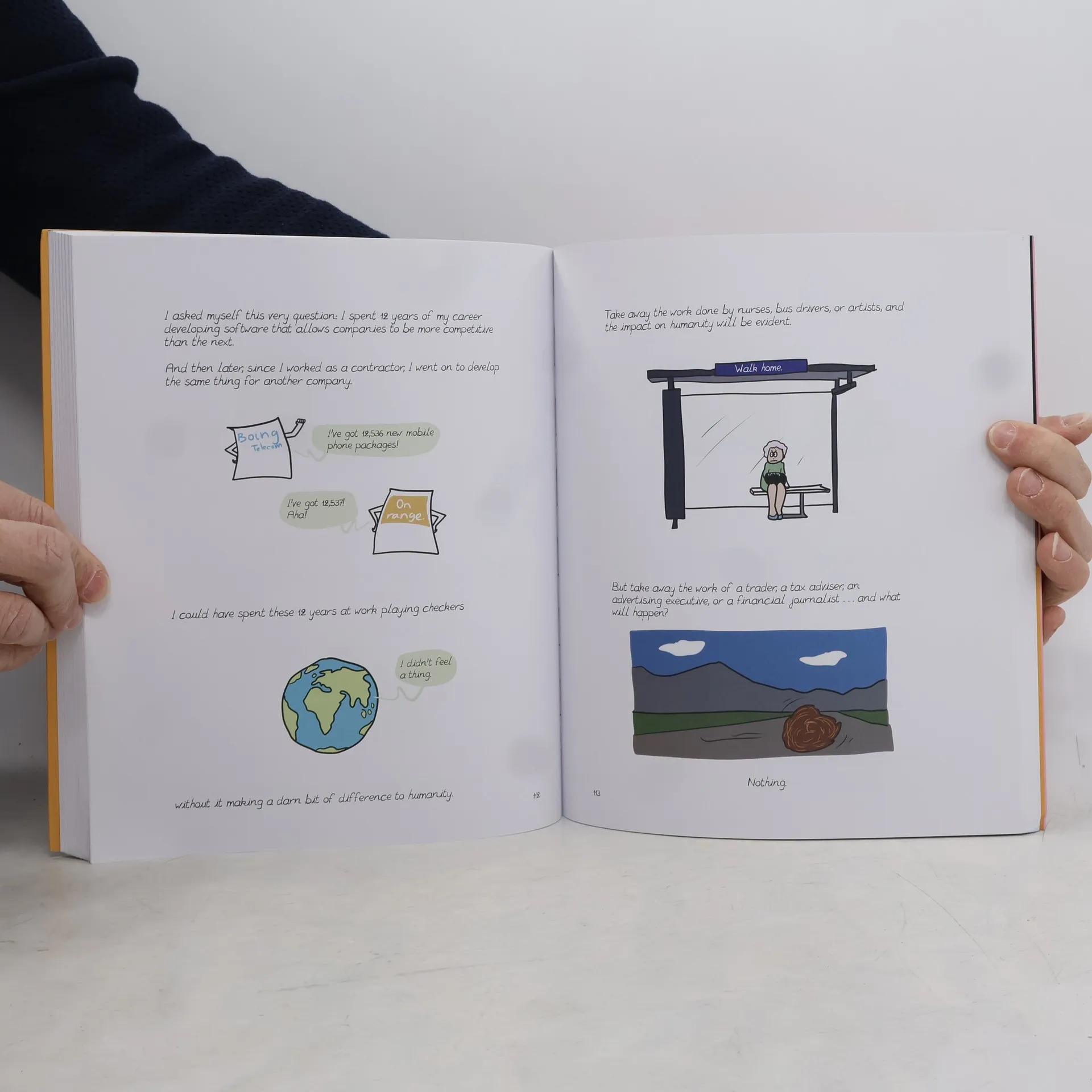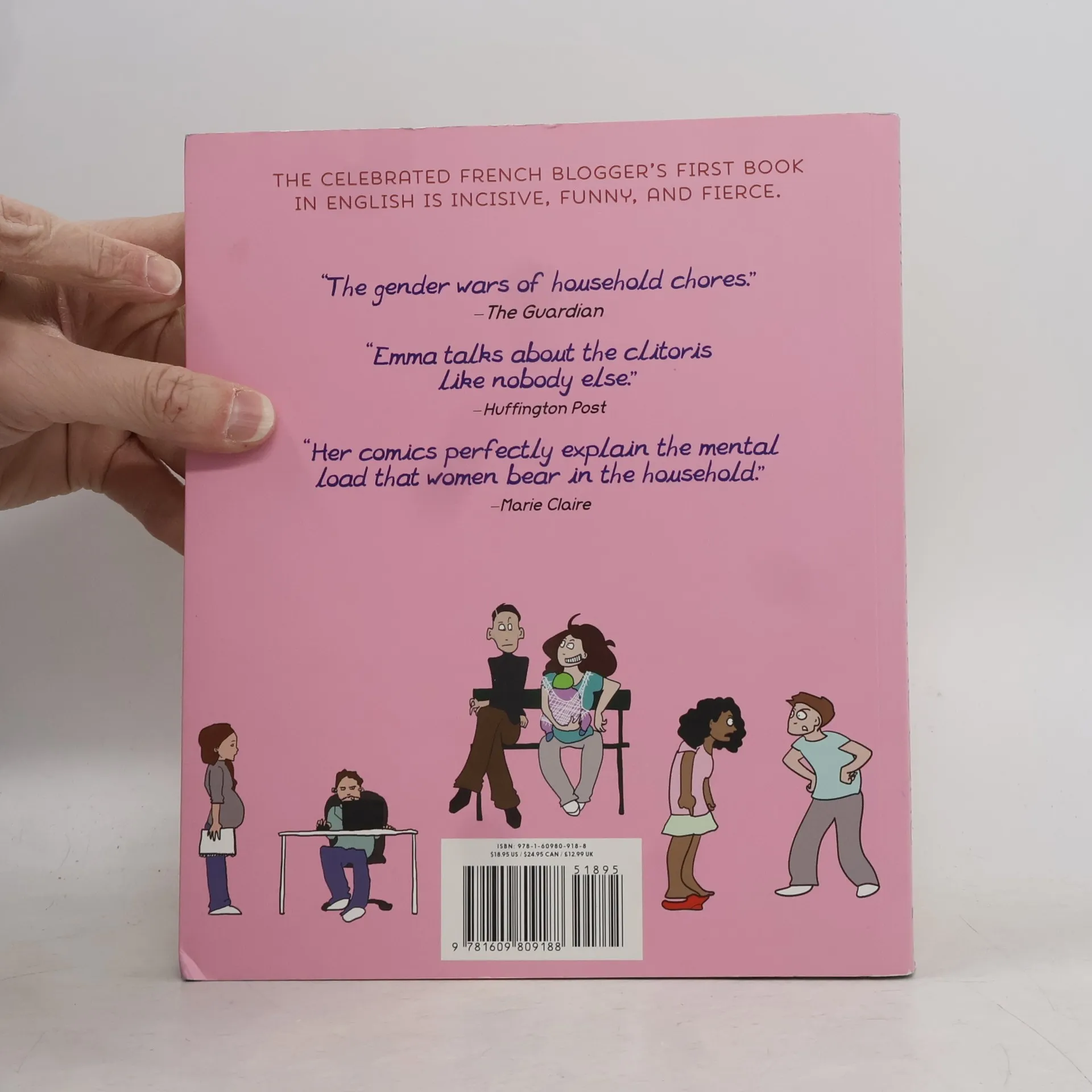 In her first book of comic strips, Emma reflects on social and feminist issues by means of simple line drawings, dissecting the mental load, i.e. all that invisible and unpaid organizing, list-making and planning women do to manage their lives, and the lives of their family members. Most of us carry some form of mental load--about our work, household responsibilities, financial obligations and personal life; but what makes up that burden and how it's distributed within households and understood in offices is not always equal or fair. In her strips Emma deals with themes ranging from maternity leave (it is not a vacation!), domestic violence, the clitoris, the violence of the medical world on women during childbirth, and other feminist issues, and she does so in a straightforward way that is both hilarious and deadly serious. If you're not laughing, you're probably crying in recognition. Emma's comics also address the everyday outrages and absurdities of immigrant rights, income equality, and police violence
