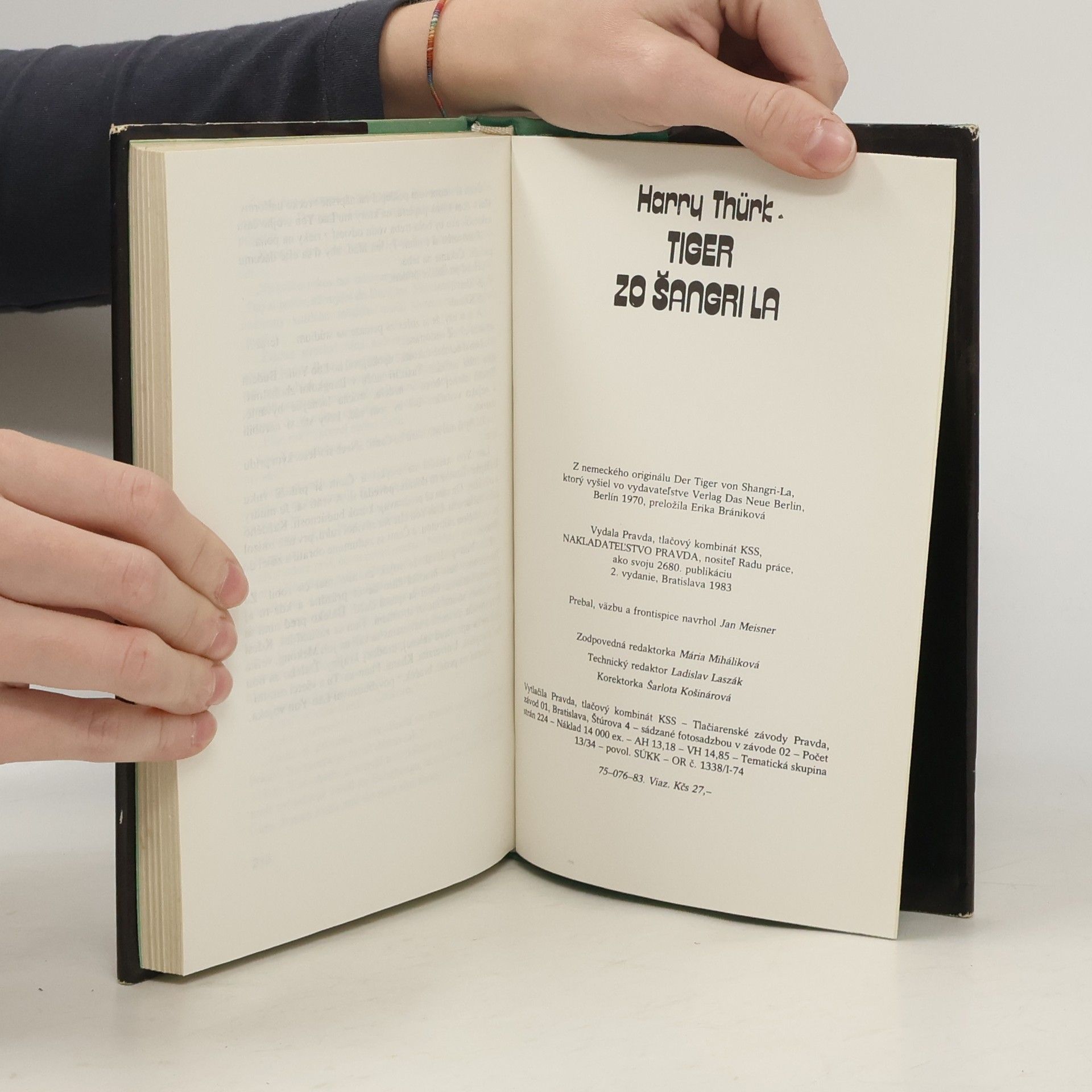 Harry Thurk, nemecký spisovateľ, získal si na Slovensku široký okruh čitateľov viacerými pútavými románmi, z ktorých spomeňme aspoň Hodinu mŕtvych očí, Dievča z džungle a Lotos na horiacich jazerách. Tak ako v posledných dvoch uvedených knihách, aj v románe Tiger zo Šangri La, ktorý vychádza v druhom vydaní, nás autor zavedie na indočínsky polostrov, do svojrázneho, exotického kúta našej zeme, do krajiny džungle, slonov a tisícich bájí. Ľudia v týchto končinách oddávna vedeli, čo je nadvláda silnejších, a ani v našom storočí ich neprestali gniaviť mocichtiví votrelci, nech to boli Japonci, Francúzi, Američania. Láska, túžba, ideály, starosti a radosti sú v týchto krajinách práve takými dôvernými sprievodcami života ako všade inde na svete. Aj hrdina nášho príbehu Lao Yon, syn roľníka z malej laoskej dedinky Nakhe, má veľké predsavzatia. Chce ako poľnohospodársky odborník zveľadiť ryžové polia a banánové háje v svojej vlasti, ktorá zvádza boj za oslobodenie spod americkej nadvlády. Zdá sa, že svoju túžbu vyštudovať v susednom Thajsku uskutoční, kým jedného dňa neuvidí v televíznej reportáži tvár svojho otca. . . Študentské povinnosti vystrieda práca vyzvedača. Úspešnosť knihy Tiger zo Šangri La zaručila autorovi dôverná znalosť prostredia a mentality národov Indočíny, zanietenie pre ich spravodlivý boj, ako aj dar šikovného rozprávača.