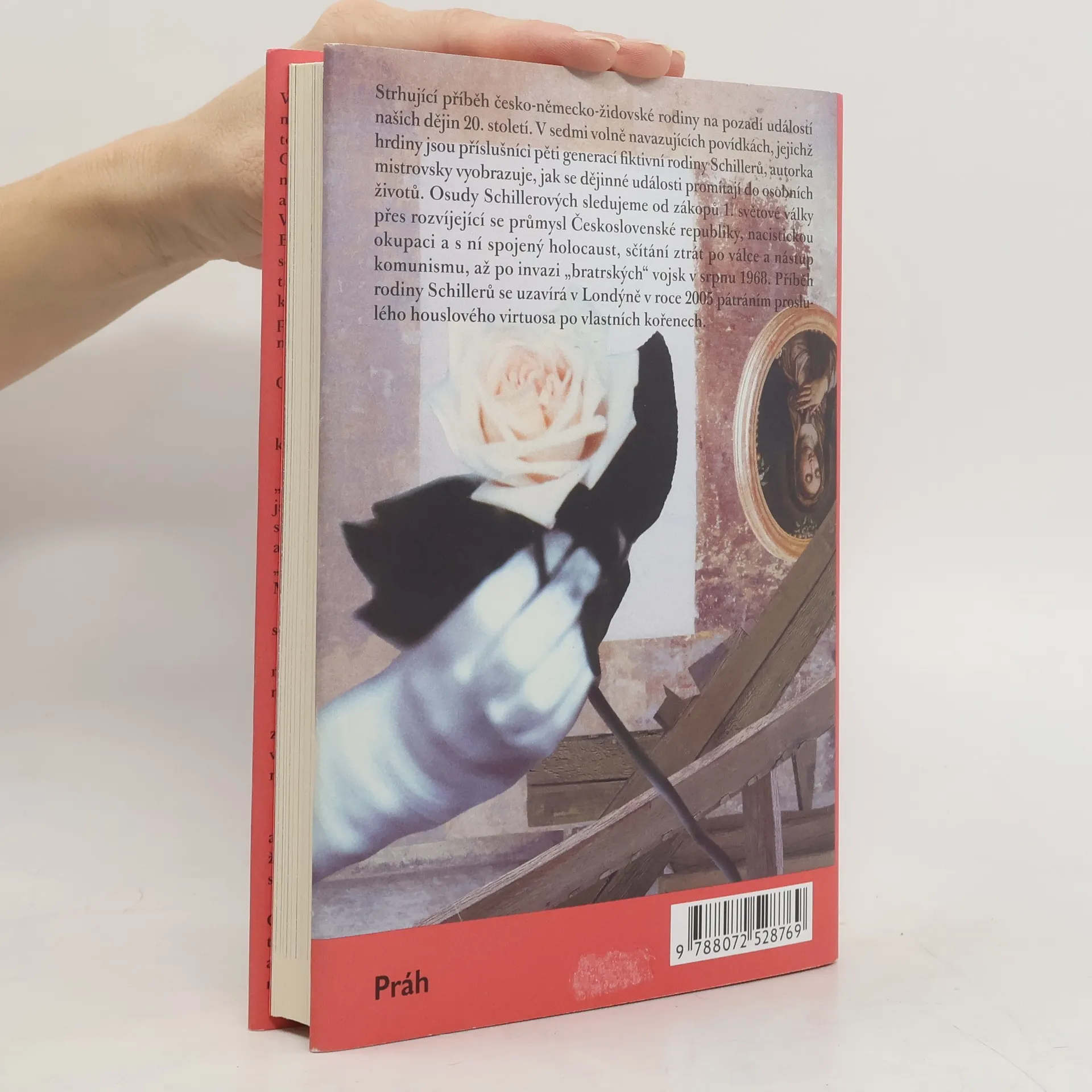 Strhující příběh česko - německo - židovské rodiny na pozadí událostí našich dějin 20. století. Citlivé zachycení 20. století v podání Aleny Ježkové se úspěšně může řadit do současného trendu ženských autorek Mornštajnové a Lednické, které pečlivě a bez přehnaného sentimentu prozkoumávají českou identitu a minulost. V sedmi volně navazujících povídkách, jejichž protagonisty jsou příslušníci pěti generací fiktivní rodiny Schillerů, autorka mistrovsky vyobrazuje, jak se dějinné události promítají do osobních životů. Tuto linii sledujeme od zákopů 1. světové války přes rozvíjející se průmyslu Československé republiky, nacistickou okupaci a s ní spojený Holocaust, sčítání ztrát po válce a nástup komunismu, až po invazi „bratrských“ vojsk v srpnu 1968. Příběh rodiny Schillerů se uzavírá v Londýně v roce 2005 pátráním proslulého houslového virtuosa po vlastních kořenech.