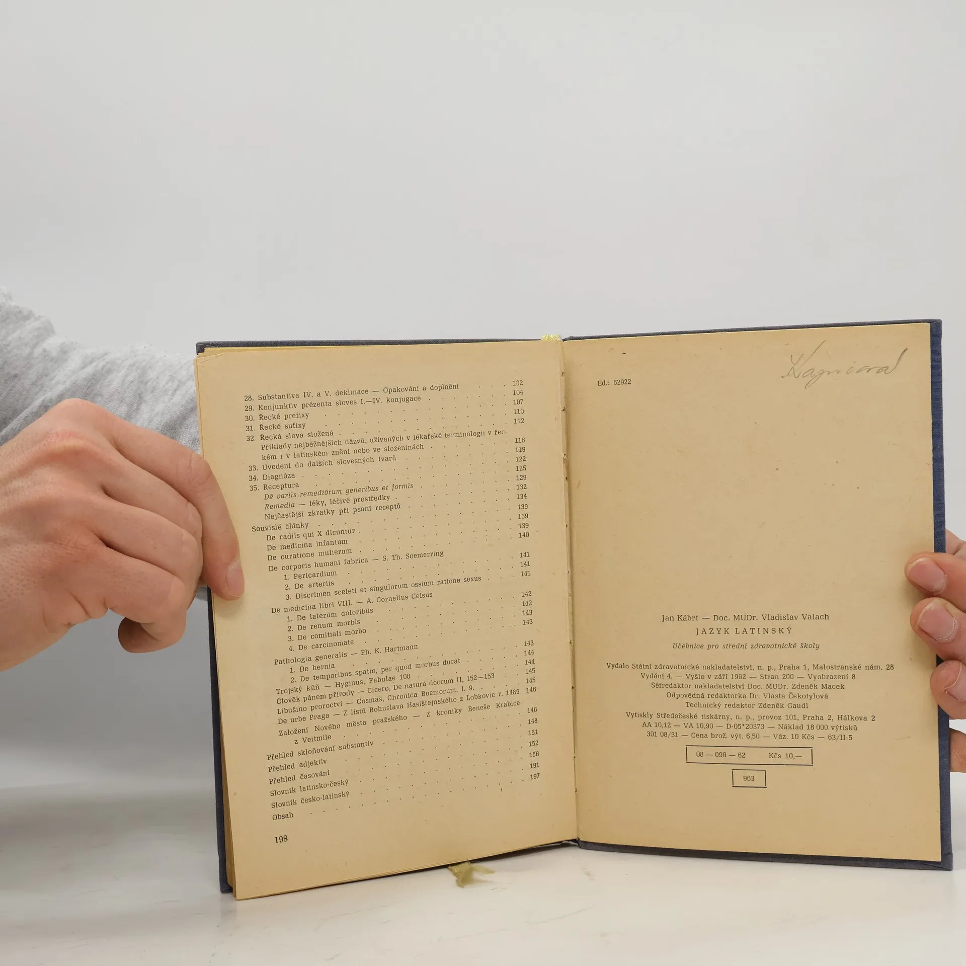 Prof. PhDr. Jan Kábrt, CSc., Doc. MUDr. Vladislav Valach: JAZYK LATINSKÝ - učebnice pro zdravotnické školy, IV. přepracované vydání.