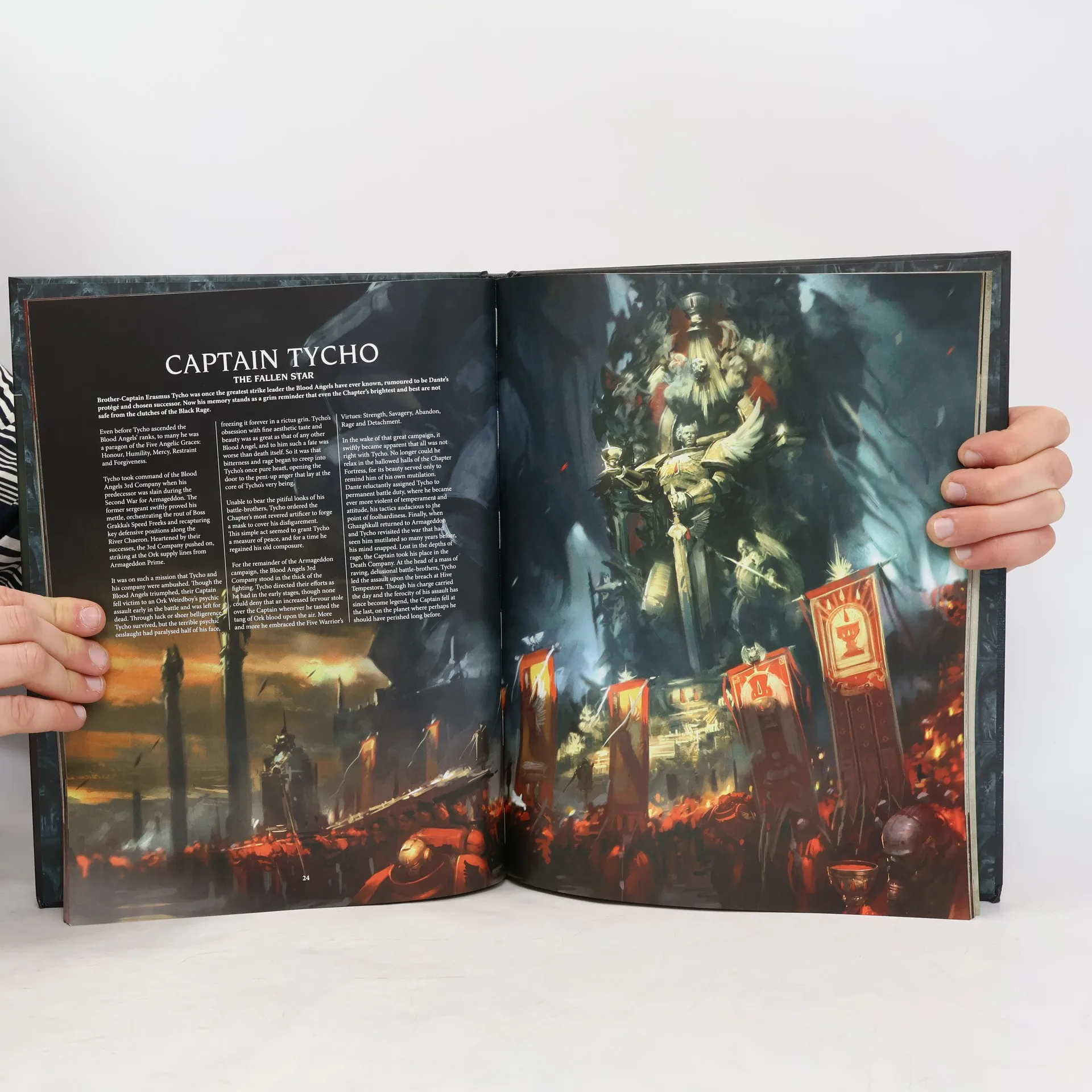 The Blood Angels are the beatific sons of Sanguinius, the Great Angel. Inside this 80-page hardback codex supplement, you'll find everything you need to unleash the Blood Angels in battle, plus thrilling lore and art to inspire your own collection.Inside this book, you'll find:- The history of the Blood Angels, with a look at how their valiant defence of Terra and loss of their Primarch at the hands of the Arch-traitor Horus forever changed their fate- A detailed description of Chapter organisation and iconography- A Blood Angels bestiary with background details for every unit and Character featured- A showcase of stunningly painted Citadel miniatures- Rules for units that are only available to the Blood Angels Chapter and their successors – including 18 datasheets- Stratagems, the Sanguinary psychic discipline, Relics, and optional secondary objectives that define the ways that the Blood Angels wage war- Bespoke Crusade rules providing new Agendas, Requisitions, Battle Traits, Honorifics, and Crusade Relics that are unique to the Blood Angels- And more!You will need a copy of Codex: Space Marines and the Warhammer 40,000 rulebook to use the rules included in this codex supplement.