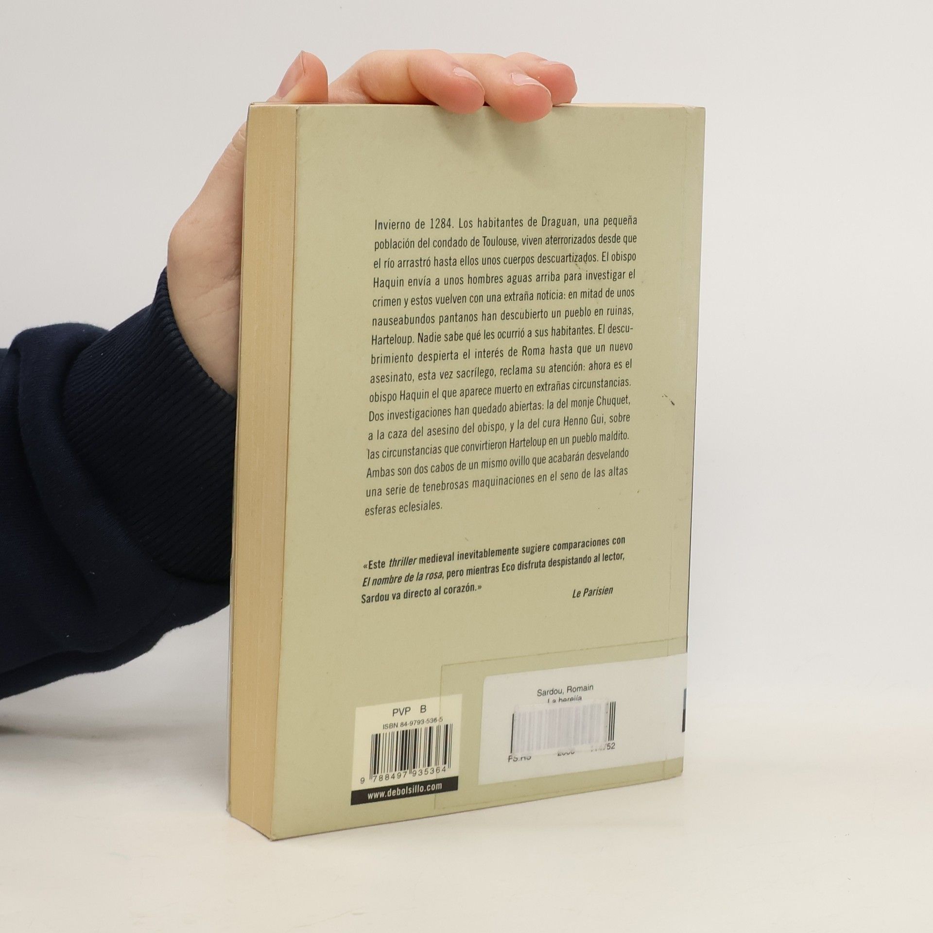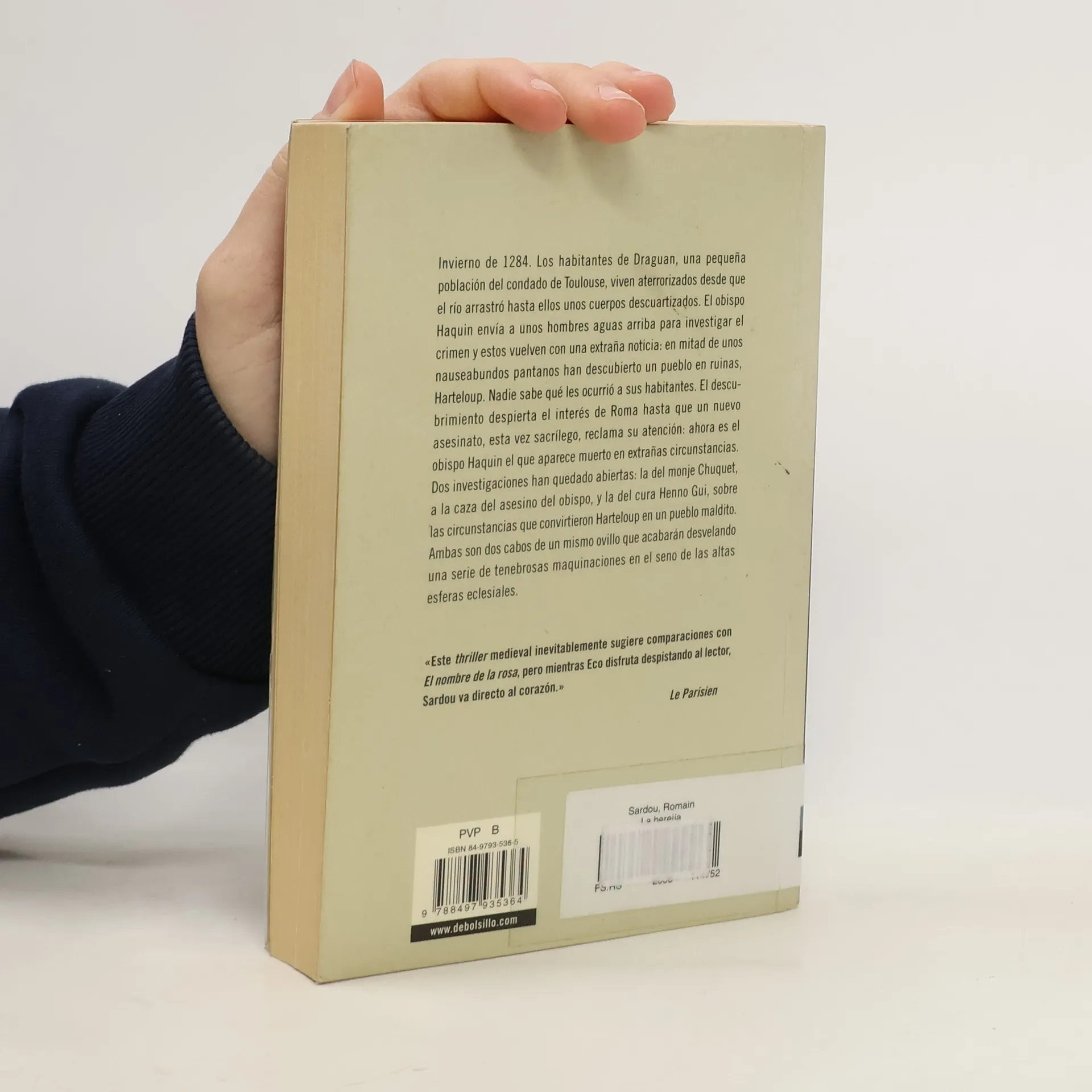 Un thriller sorprendente, tenebroso, cuya acción transcurre en plena Edad Media. Invierno de 1284; los habitantes de Draguan, una pequeña población del condado de Toulouse, viven aterrorizados desde que el día arrastró hasta ellos unos cuerpos descuartizados. El obispo Haquin envía a unos hombres aguas arriba para investigar el crimen y estos vuelven con una extraña noticia: en mitad de unos nauseabundos pantanos han descubierto un pueblo en ruinas, Harteloup. Nadie sabe qué les ocurrió a los habitantes. El descubrimiento despierta el interés de Roma, hasta que un nuevo asesinato, esta vez sacrílego, reclama su atención: ahora es el obispo Haquin el que aparece muerto en extrañas circunstancias. Dos investigaciones han quedado abiertas: la del monje Chuquet, a la caza del asesino del obispo, y la del cura Henno Gui, sobre las circunstancias que convirtieron Harteloup en un pueblo maldito. Ambas son dos cabos de un mismo ovillo que acabarán desvelando una serie de tenebrosas maquinaciones en el seno de las altas esferas eclesiásticas. Ficción e historia conjugadas con gran ingenio y pulso narrativo en torno a las supersticiones, al oscurantismo, al enfrentamiento entre la Iglesia y la ciencia, y la sed de poder.
