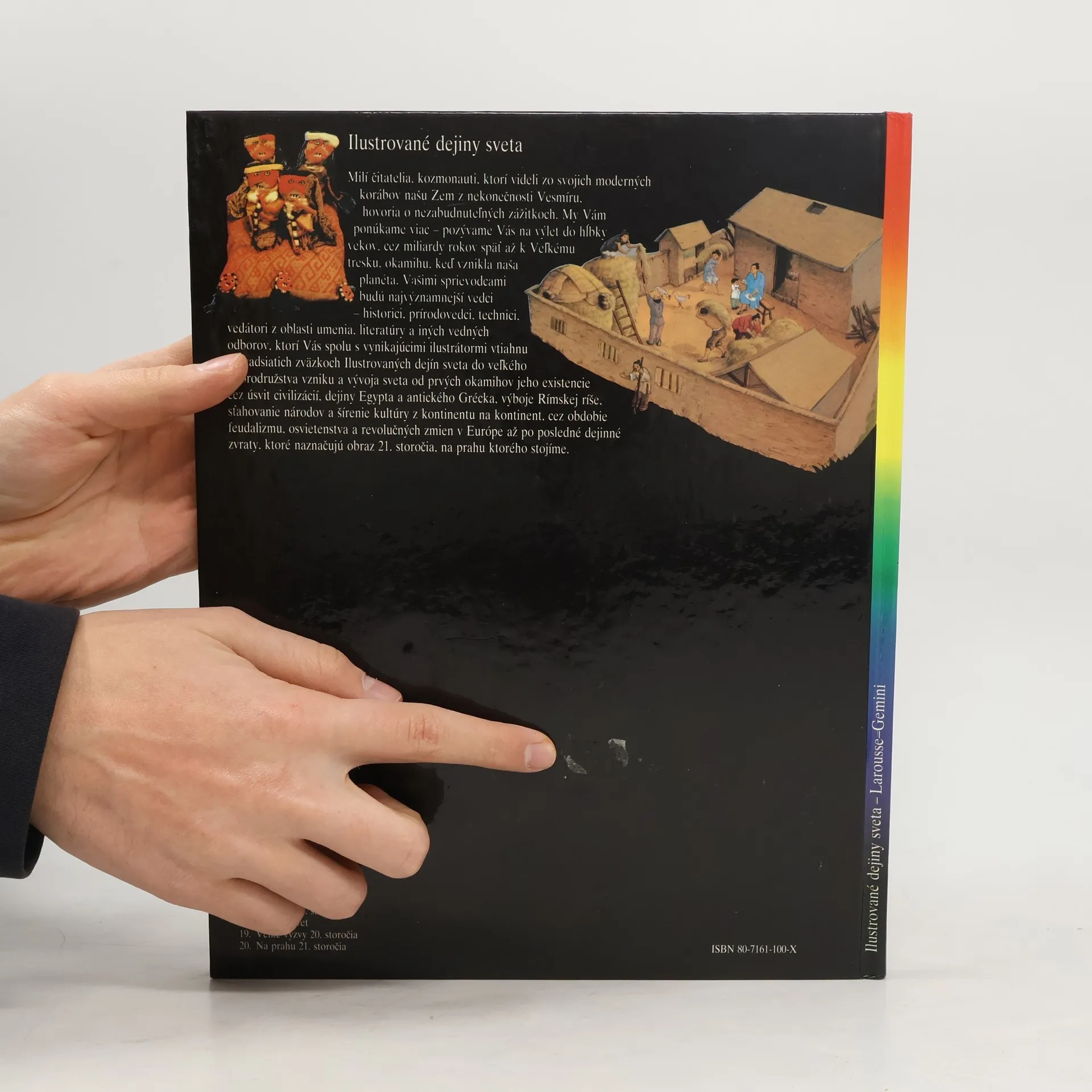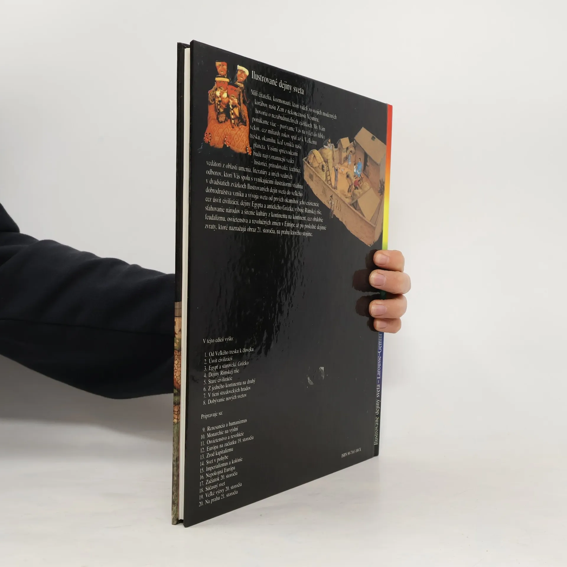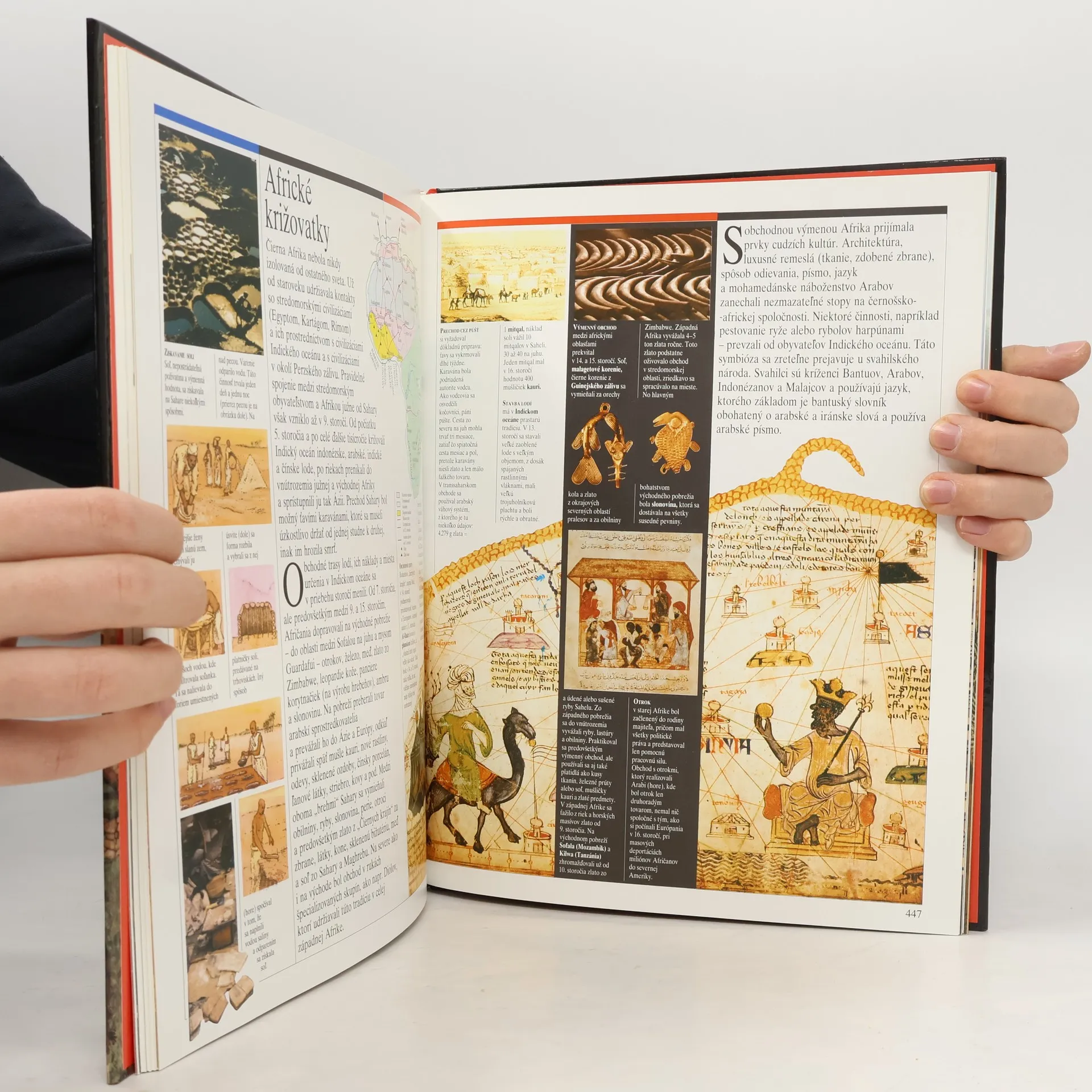 Kapitoly: Indickí mudrci a bojovníci-Veľké mestá, Zrod civilizácie, Obchod a kláštory, Básnici a stavitelia, Indickí myslitelia, Veľkolepé stavby na prelome tisícročí, Moslimské vpády, Šírenie budhizmu. Staroveká Čína-Majstri bronzu, Zem, Ríša, Veľký čínsky múr, Kultúra čínskeho písma, Veľký kanál, Rozkoše Chang-čou, Čínska genialita. V krajine vychádzajúceho slnka-Prví Japonci, Štát Jamato, Čínsky vplyv, Nebezpečné plavby, Heiankjó, hlavné mesto cisárstva, Cisársky dvor, Všedný život, Vzostup bojovníkov, Obdobie bojovníkov. Spomienky na Afriku-Ríša Mali, Mestá a kráľovstvá, Mozaika národov, Africké kulty, Mágia a čarodejníctvo, Poľnohospodárstvo, Nerastné bohatstvo, Remeselníci, Mestá, Africké križovatky, Odev a ozdoby. Americkí indiáni-Boh kukurice, Pueblo Bonito, Mohyla z Cahokie, Olmékovia, "Mesto bohov", "Pelota", Prvé andské mestá, Archeológia v službách budúcnosti. Národy Slnka-Mestské štáty starých Mayov, Meranie času, Osud Mexikov, Aztécka spoločnosť, Ríša Slnka, Cesty Inkov, Sviatky po celý rok, Posledné lúče boha Slnka. Druhé vydanie.