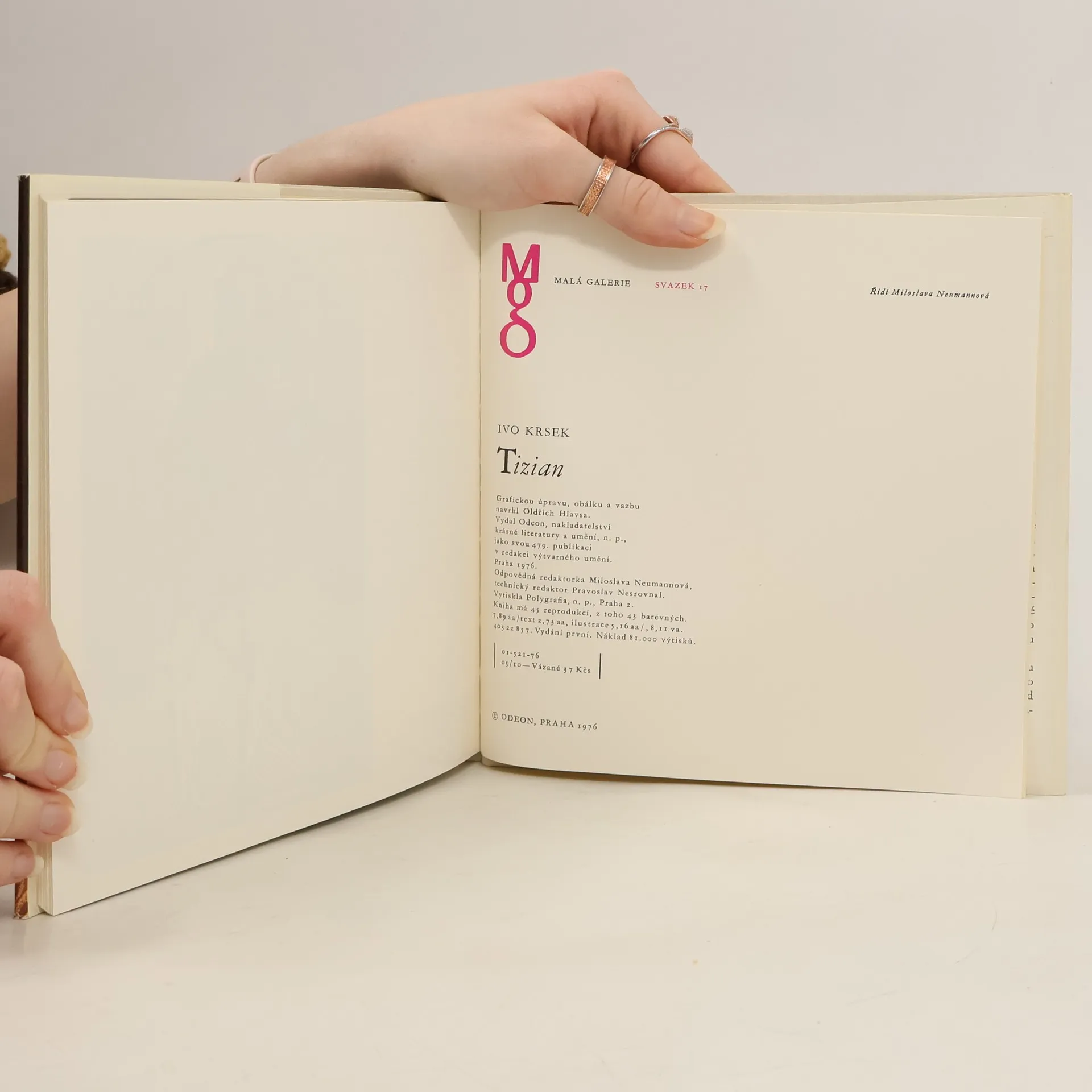 Tato nevelká monografie, reprodukující 38 Tizianových obrazů (některé s detailními záběry) a 2 kresby, je skromnou připomínkou velkého umělcova odkazu. Edice Malá galerie, svazek 17. 1. vydání.