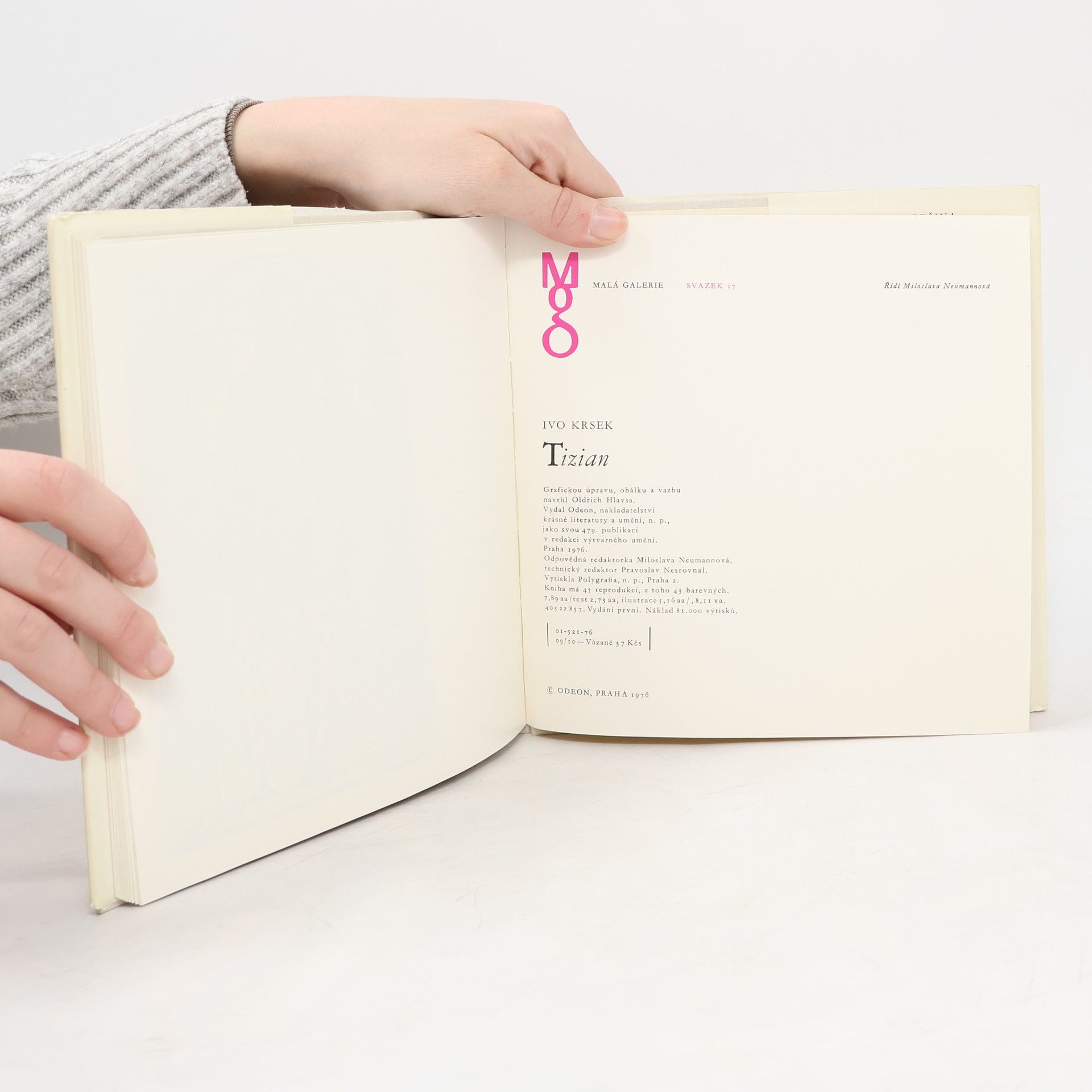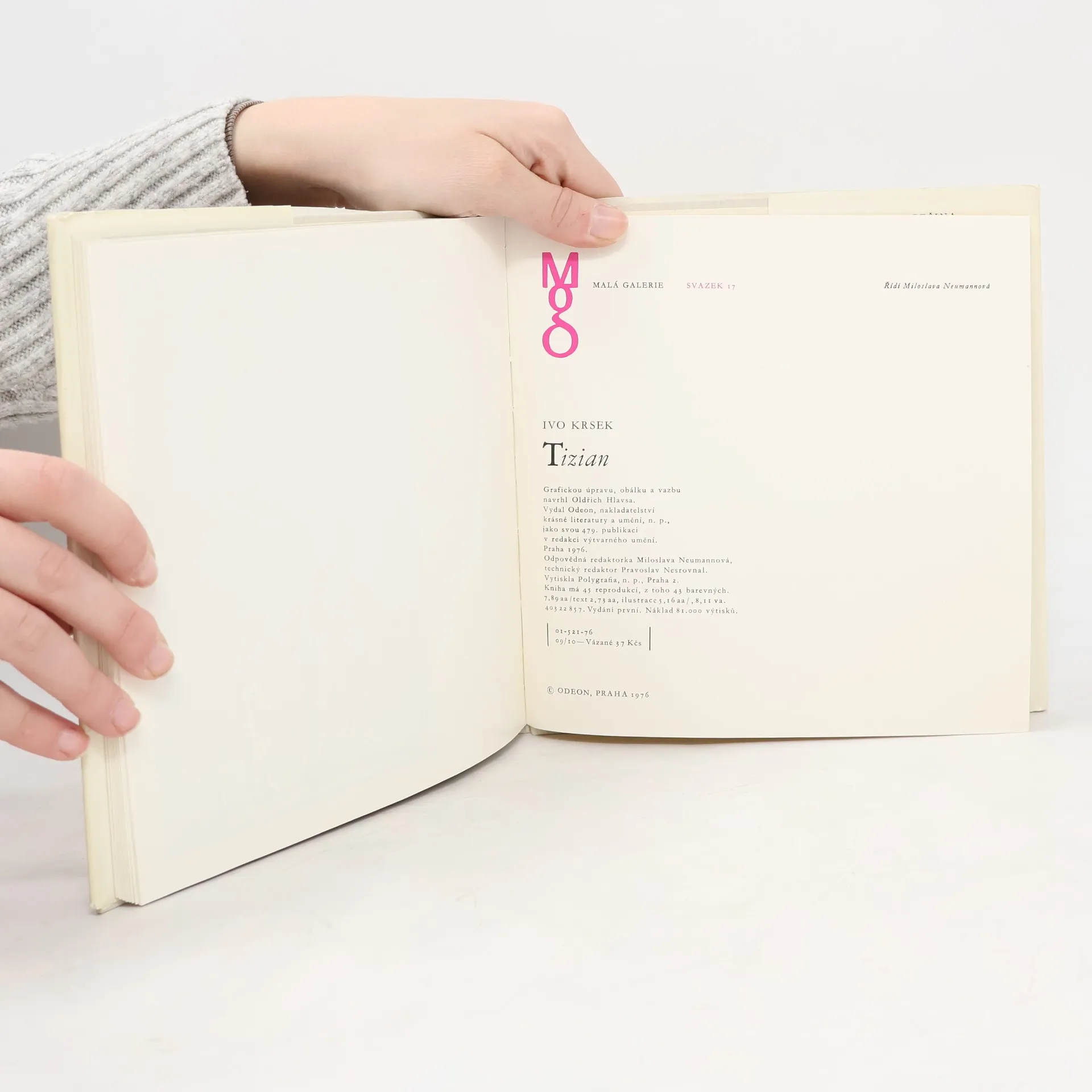 Tato nevelká monografie, reprodukující 38 Tizianových obrazů (některé s detailními záběry) a 2 kresby, je skromnou připomínkou velkého umělcova odkazu. Edice Malá galerie, svazek 17. 1. vydání.