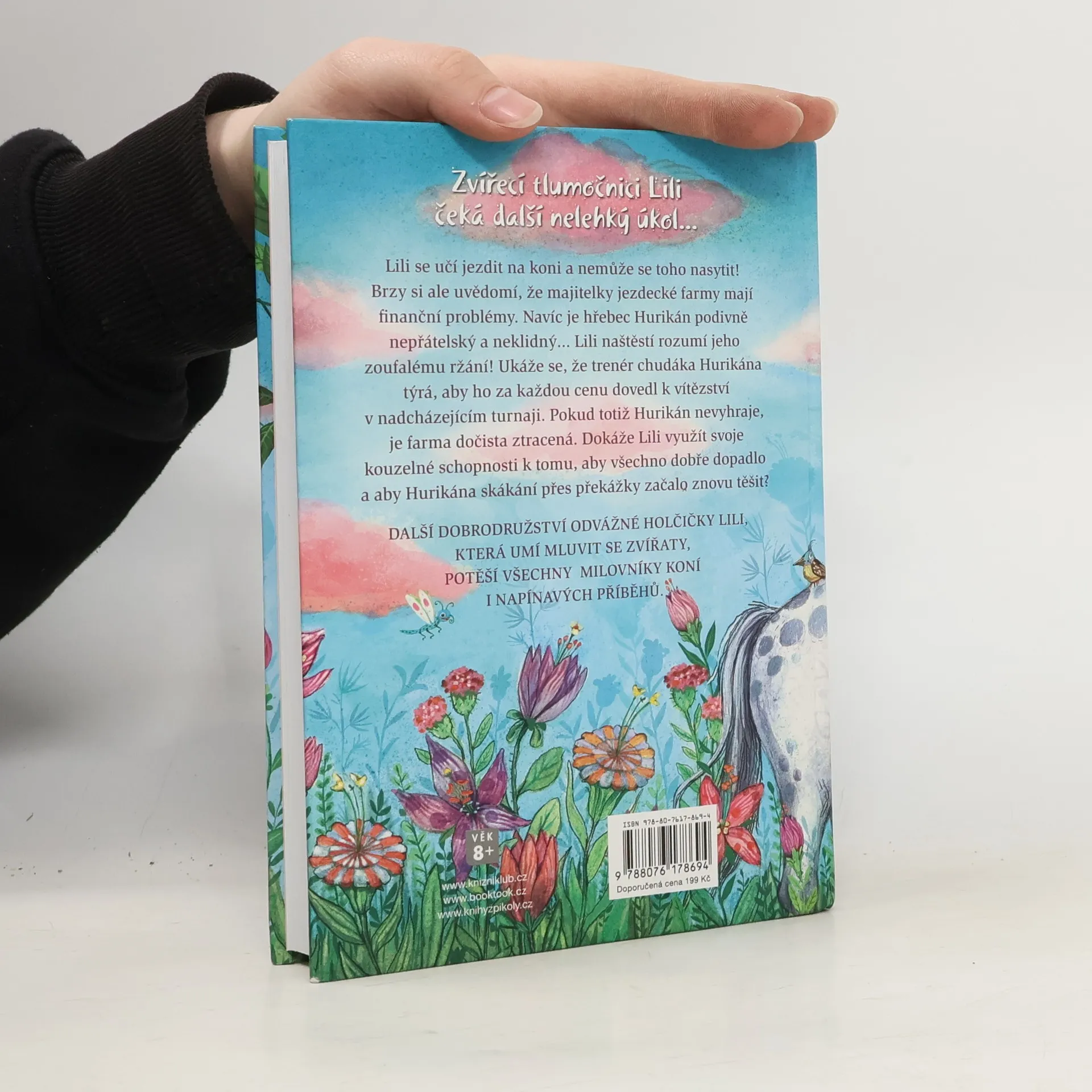 Lili se učí jezdit na koni a nemůže se toho nasytit! Brzy si ale uvědomí, že majitelky jezdecké farmy mají finanční problémy. Navíc je hřebec Hurikán podivně nepřátelský a neklidný… Lili naštěstí rozumí jeho zoufalému ržání! Ukáže se, že trenér chudáka Hurikána brutálně týrá, aby ho za každou cenu dovedl k vítězství v nadcházejícím turnaji. Pokud totiž Hurikán nevyhraje, je farma dočista ztracená. Dokáže Lili využít svoje kouzelné schopnosti k tomu, aby všechno dobře dopadlo a aby Hurikána skákání přes překážky začalo znovu těšit? Další díl oblíbené série o statečné Lili, která dokáže mluvit se zvířaty, je určená čtenářkám od 8 let.