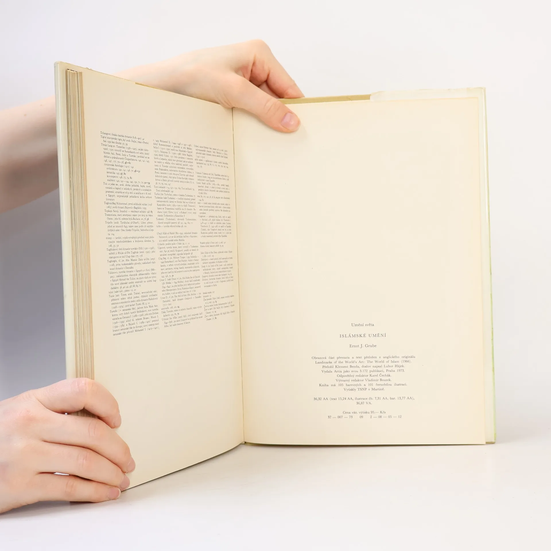 Uměleckohistorická práce o hlavních vývojových tendencích islámského umění, vyrůstajícího z předislámských tradic podrobených zemí a z arabských, perských a tureckých prvků, demonstruje bohatství a rozmanitost jeho projevů v architektuře, malířství, keramice, kovu, řezbě, kobercíchaj. Látka je rozčleněna podle jednotlivých dynastií, jež ovládaly části původně jednotné muslimské říše. 105 barevných a 101 černobílých ilustrací. – Doslov Lubor Hájek.