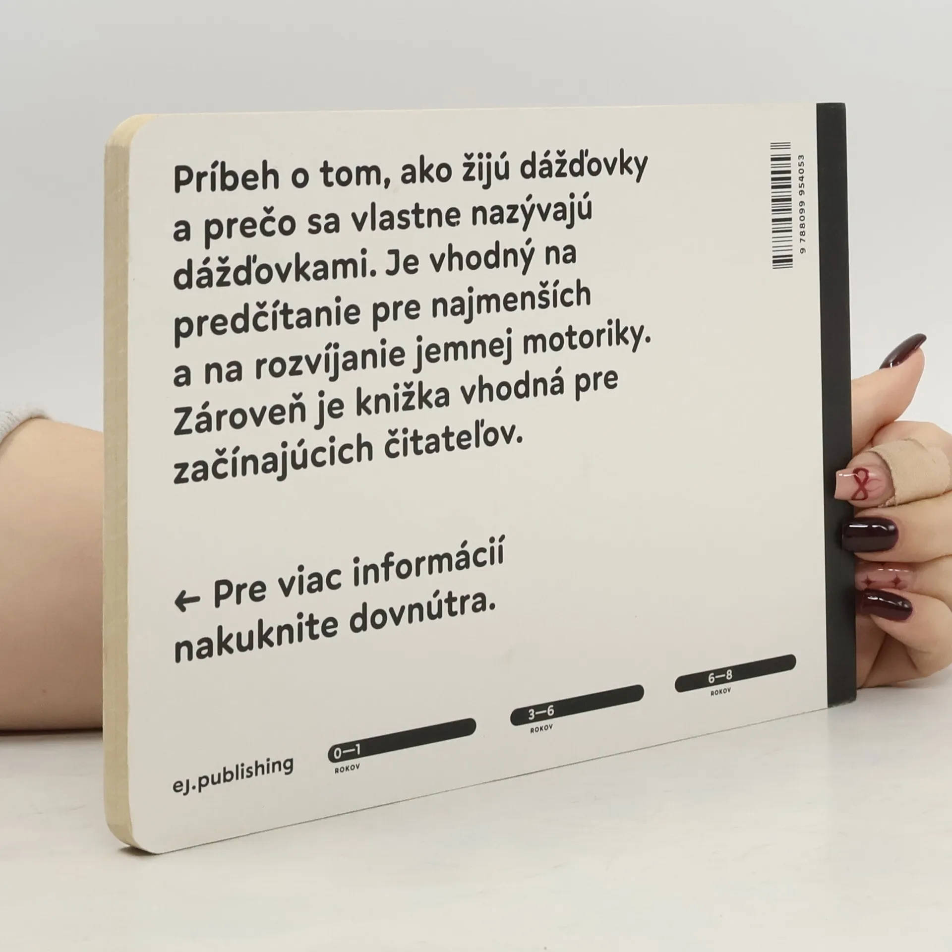 Príbeh o tom, ako žijú dážďovky a prečo sa vlastne nazývajú dážďovkami. Je vhodný na predčítanie pre najmenších a na rozvíjanie jemnej motoriky. Zároveň je knižka vhodná pre začínajúcich čitateľov. Pre viac informácií nakuknite dovnútra.