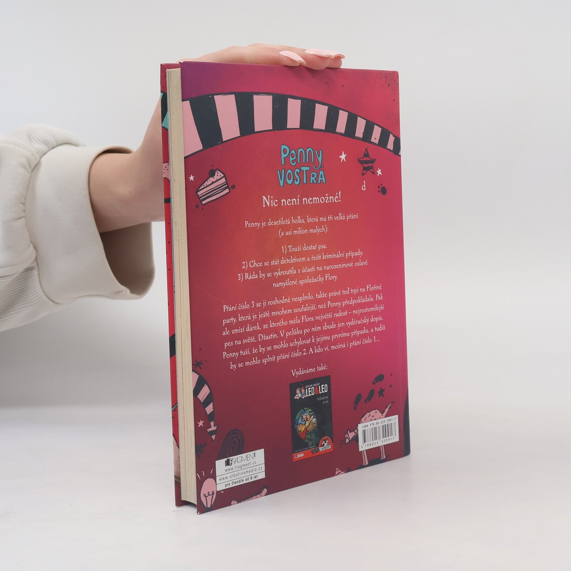 Penny je desetiletá holka, která má tři velká přání (a asi milion malých): 1) Touží dostat psa. 2) Chce se stát detektivem a řešit kriminální případy. 3) Ráda by se vykroutila z účasti na oslavě namyšlené spolužačky Flory. Přání číslo 3 se jí rozhodně nesplnilo, takže právě teď trpí na té nejděsivější oslavě pod sluncem. Pak ale zmizí dárek, ze kterého měla Flora největší radost – pejsek Džastin. Zbude po něm jen vyděračský dopis v jeho pelíšku. Že by se schylovalo k prvnímu detektivnímu případu?