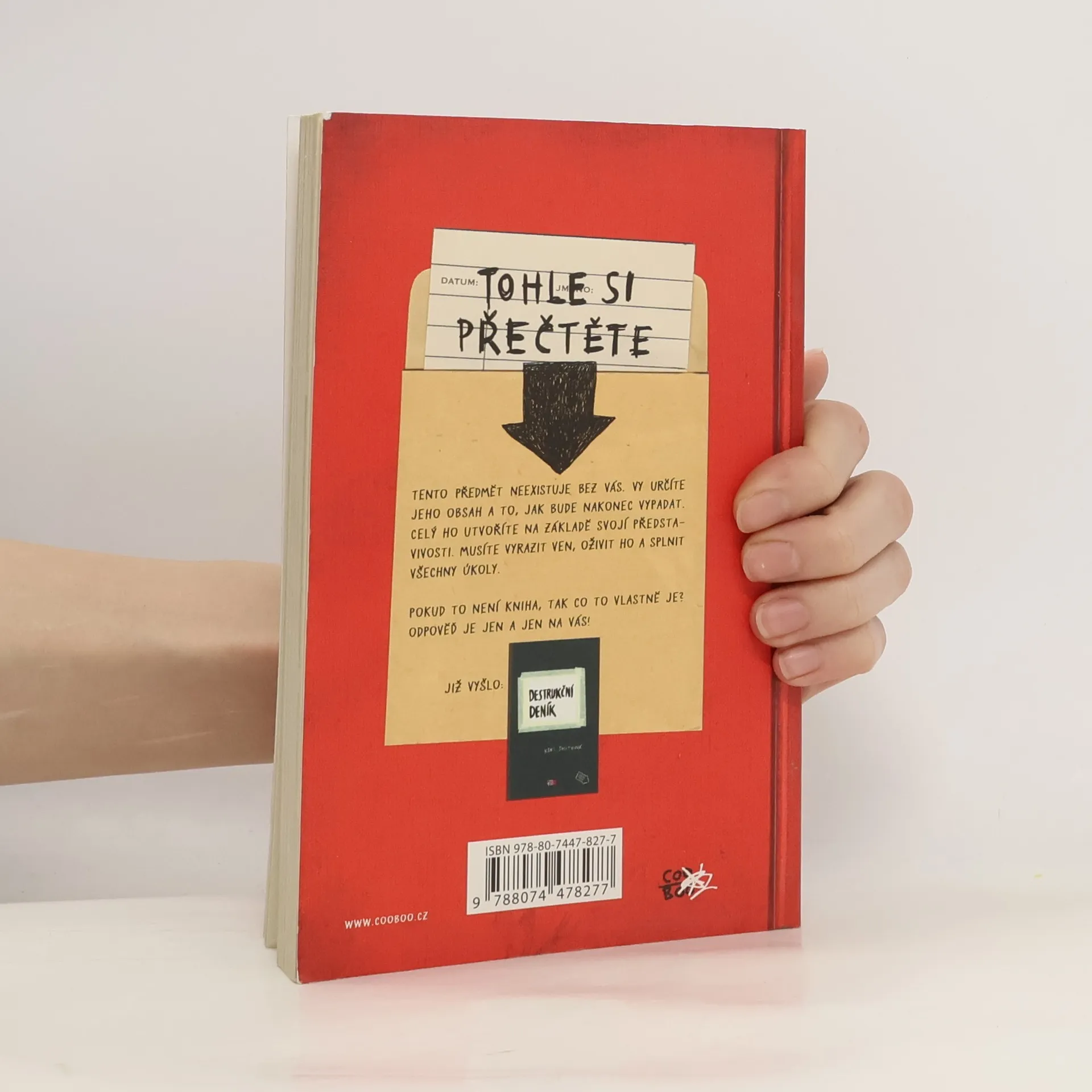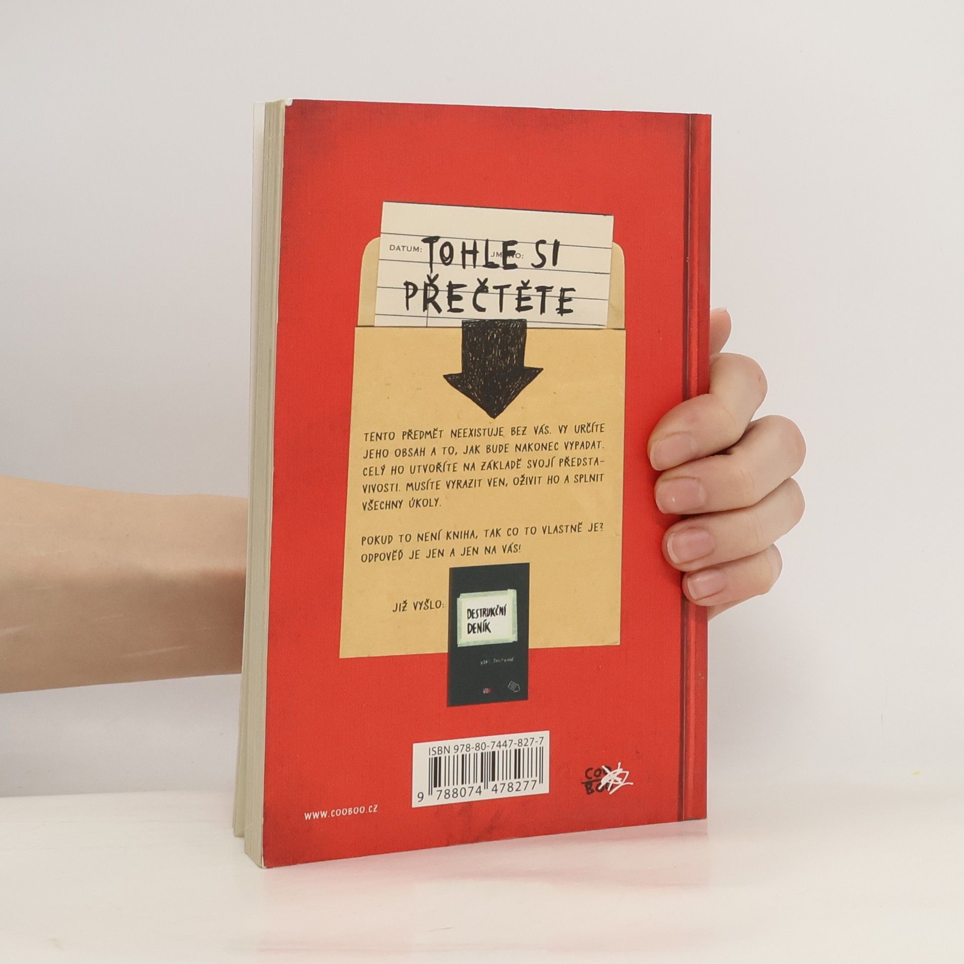 Chystá se na vás další dávka destrukce! Totiž pardon, tvoření… Jste zvědaví, čím vším může kniha být? Keri Smithová vás to na stránkách téhle knihy, co není kniha, nechá mnohokrát přehodnotit! Ale když to není kniha, co to tedy je? To je jen a jen na vás ;)