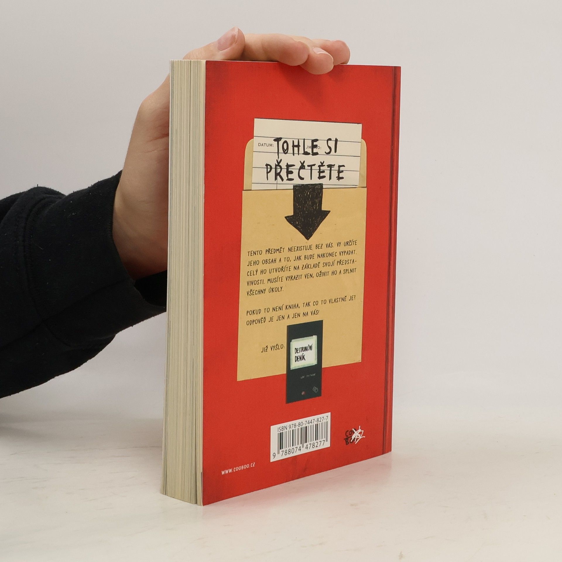 Chystá se na vás další dávka destrukce! Totiž pardon, tvoření… Jste zvědaví, čím vším může kniha být? Keri Smithová vás to na stránkách téhle knihy, co není kniha, nechá mnohokrát přehodnotit! Ale když to není kniha, co to tedy je? To je jen a jen na vás ;)