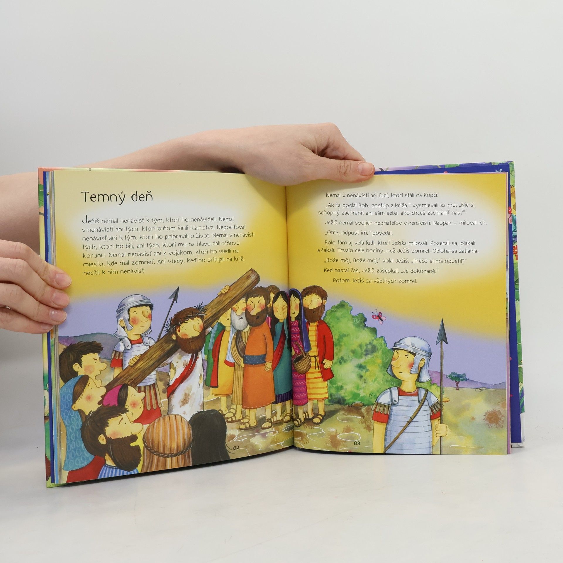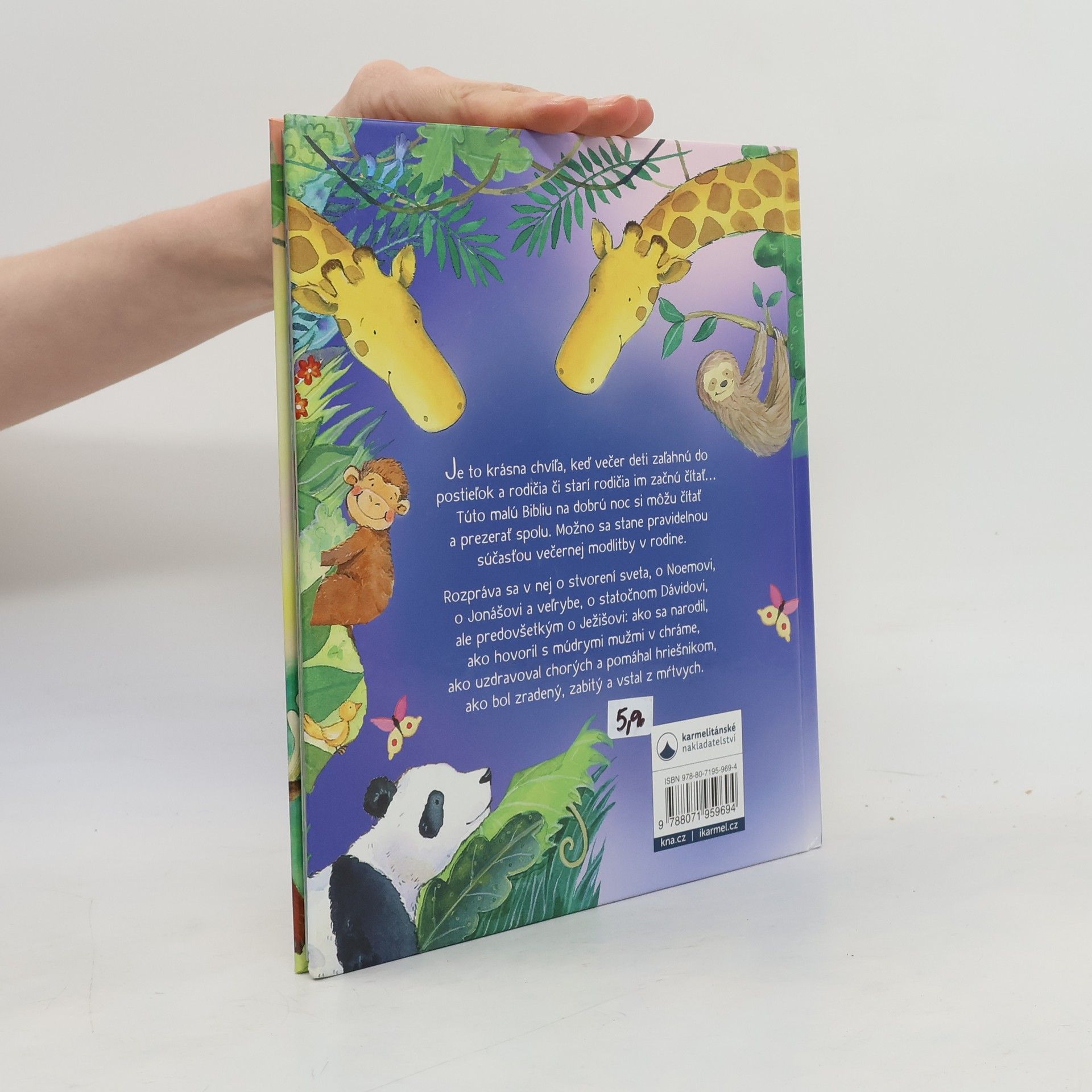 Je to krásna chvíľa, keď večer deti zaľahnú do postieľok a rodičia či starí rodičia im začnú čítať... Túto malú Bibliu na dobrú noc si môžu čítať a prezerať spolu. Možno sa stane pravidelnou súčasťou večernej modlitby v rodine. Rozpráva sa v nej o stvorení sveta, o Noemovi, o Jonášovi a veľrybe, o statočnom Dávidovi, ale predovšetkým o Ježišovi: ako sa narodil, ako hovoril s múdrymi mužmi v chráme, ako uzdravoval chorých a pomáhal hriešnikom, ako bol zradený, zabitý a vstal z mŕtvych.