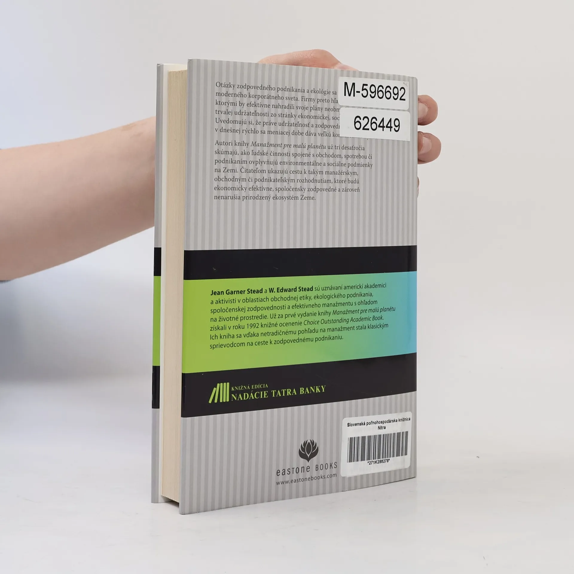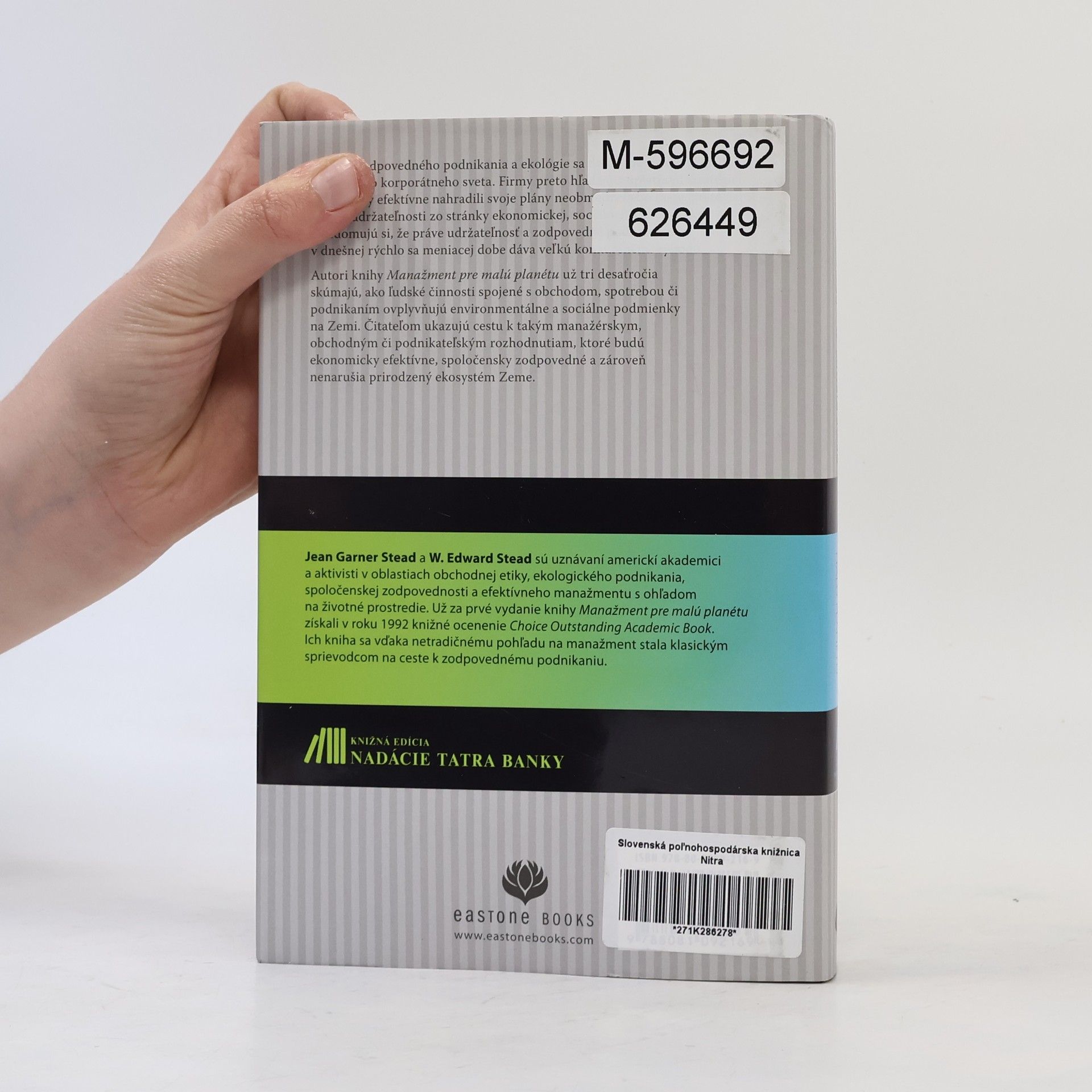 Podtitul: Prečo je dôležité meniť stratégie neobmedzeného rastu na stratégie udržateľnosti.Knižná edícia Nadácie Tatra banky prináša na slovenský trh exkluzívny výber titulov renomovaného amerického vydavateľstva odborných kníh HARVARD BUSINESS PRESS.Otázky zodpovedného podnikania a ekológie sa dostávajú medzi priority moderného korporátneho sveta. Firmy preto hľadajú stratégie, ktorými by efektívne nahradili svoje plány neobmedzeného rastu stratégiami trvalej udržateľnosti po stránke ekonomickej, sociálnej aj ekologickej. Uvedomujú si, že práve udržateľnosť a zodpovedné podnikanie im dáva veľkú konkurenčnú výhodu.Autori knihy Manažment pre malú planétu už desťročia skúmajú, ako ľudské činnosti spojené s obchodom, spotrebou či podnikaním, ovplyvňujú enviromentálne a sociálne podmienky na Zemi. Čitateľom ukazujú cestu k takým manažérskym či podnikateľským rozhodnutiam, ktoré budú ekonomicky efektívne, spoločensky zodpovedné a zároveň nenarušia prirodzený ekosystém Zeme.