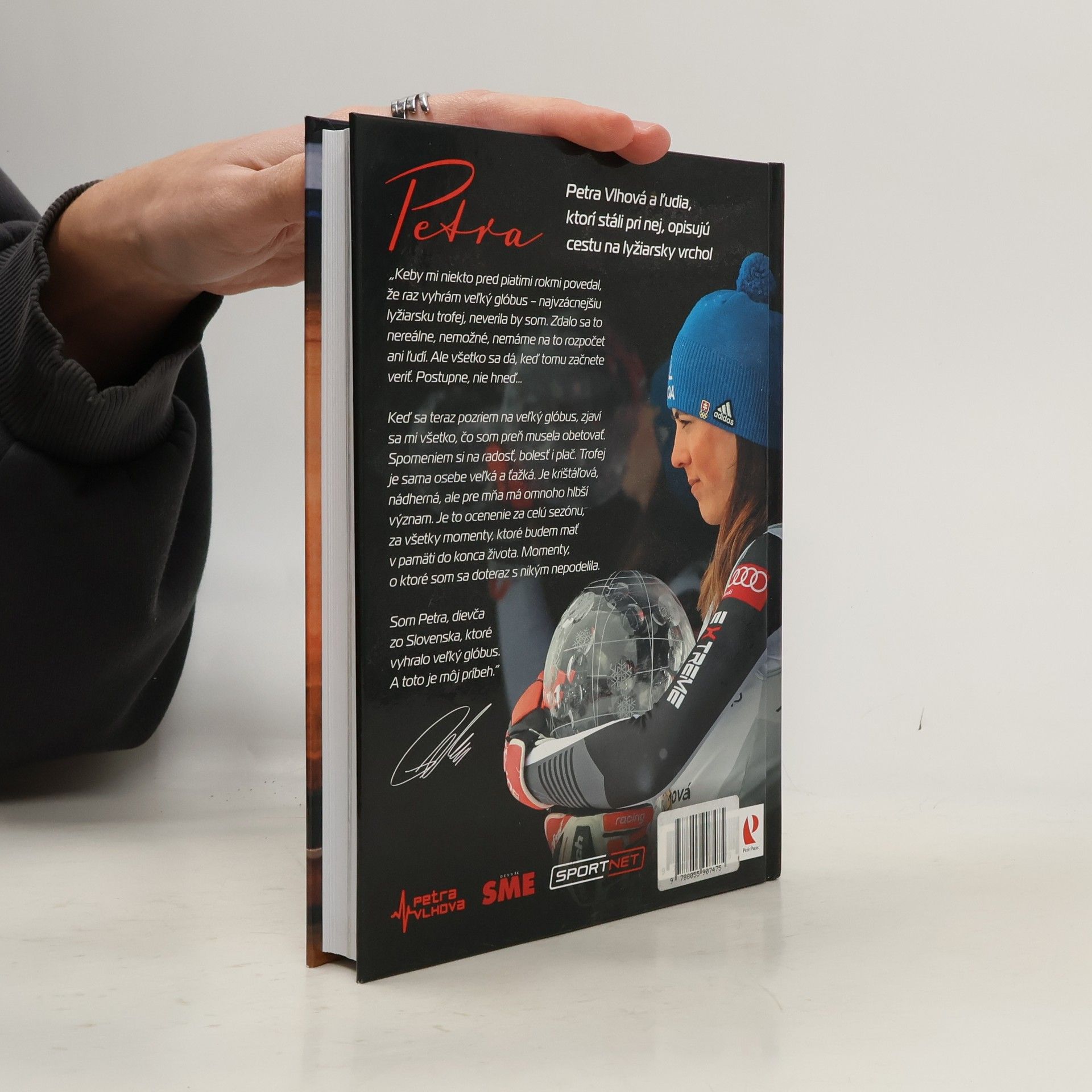 Petra Vlhová a ľudia, ktorí stáli pri nej, opisujú cestu na lyžiarsky vrchol. V súčasnosti najúspešnejšia slovenská športovkyňa vydáva oficiálnu autobiografiu. Hovorí, ako sa zo skromného dievčaťa z Liptova nadovšetko milujúceho lyžovanie stala športová hviezda svetového formátu. Vlhová rozpráva o detstve, dospievaní, prvých úspechoch i sklamaniach. Odhaľuje zákulisie lyžiarskeho sveta, opisuje vzťah s najväčšou rivalkou Mikaelou Shiffrinovou, približuje život ženy v mužskom svete. Až mrazivo úprimne a otvorene rozpovedala aj strastiplný príbeh spolupráce s bývalým trénerom Liviom Magonim i jeho nečakaný a bolestivý koniec. Unikátnosť publikácie umocňujú kapitoly s jej najbližšími, bývalými trénermi i členmi tímu. Súčasťou knihy je aj výnimočná 40-stranová príloha fotografií z jej súkromného i profesionálneho života. "Keď sa teraz pozriem na veľký glóbus, zjaví sa mi všetko, čo som preň musela obetovať. Spomeniem si na radosť, bolesť i plač. Trofej je sama osebe veľká a ťažká. Je nádherná, ale pre mňa má omnoho hlbší význam. Je to ocenenie za celú sezónu, za všetky momenty, ktoré budem mať v pamäti do konca života. Momenty, o ktoré som sa doteraz s nikým nepodelila. Som Petra, dievča zo Slovenska, ktoré vyhralo veľký glóbus. A toto je môj príbeh," hovorí Vlhová v úvode knihy. A pokračuje tak, ako lyžuje - priamo, naplno a bez zábran.