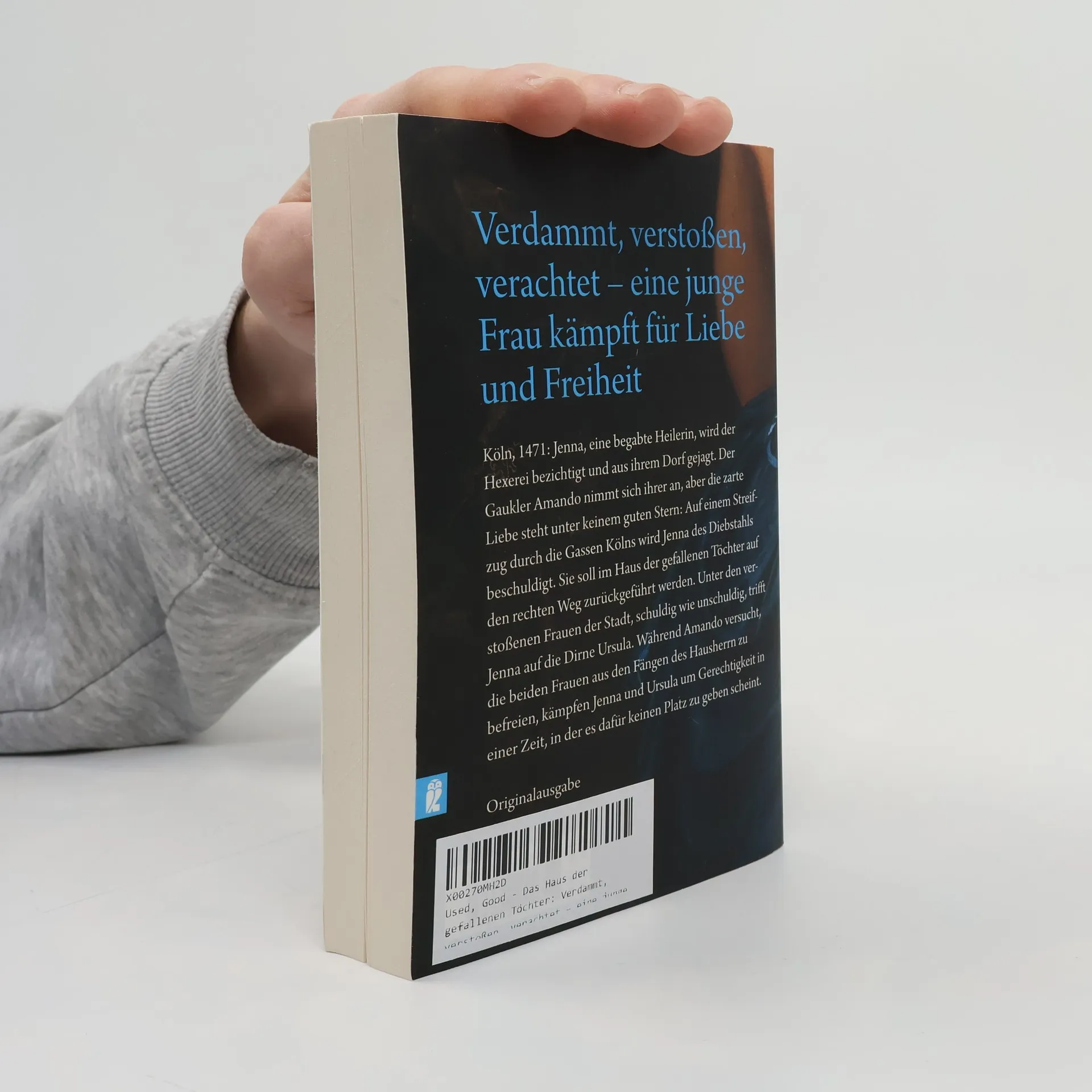 Verdammt, verstoßen, verachtet – eine junge Frau kämpft für Liebe und Freiheit Köln, 1471: Jenna, eine begabte Heilerin, wird der Hexerei bezichtigt und aus ihrem Dorf gejagt. Der Gaukler Amando nimmt sich ihrer an, doch die zarte Liebe steht unter keinem guten Stern: Auf einem Streifzug durch die Gassen Kölns wird Jenna des Diebstahls beschuldigt. Sie soll im Haus der gefallenen Töchter auf den rechten Weg zurückgeführt werden. Unter den verstoßenen Frauen der Stadt, schuldig wie unschuldig, trifft Jenna auf die Dirne Ursula. Während Amando versucht, die beiden Frauen aus den Fängen des Hausherrn zu befreien, kämpfen Jenna und Ursula um Gerechtigkeit in einer Zeit, in der es dafür keinen Platz zu geben scheint.