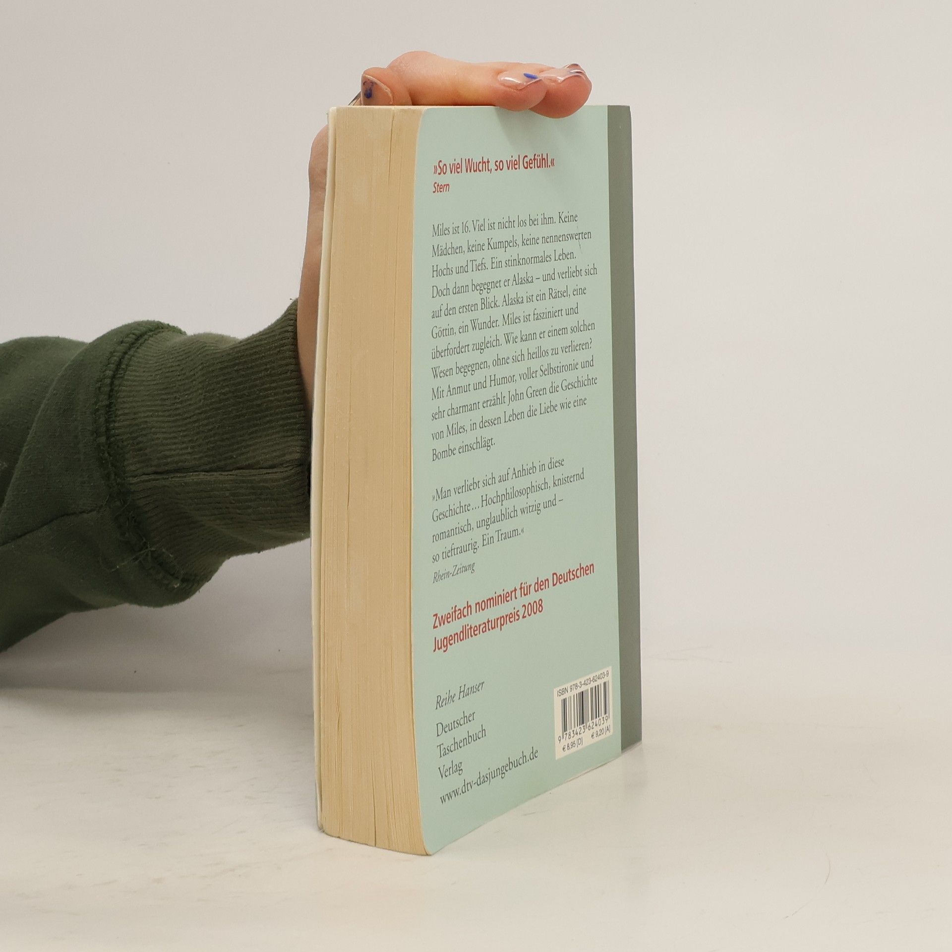 Zweifach nominiert für den Deutschen Jugendliteraturpreis 2008. Miles hat die Schule gewechselt. Auf dem Internat verknallt er sich in die schöne Alaska. Sie ist das Zentrum ihres Sonnensystems, der magische Anziehungspunkt des Internats. Wer um sie kreist, ist glücklich und verletzlich gleichermaßen, euphorisch und immer nah am Schulverweis. Alaska mag Lyrik, nächtliche Diskussionen über philosophische Absurditäten, heimliche Glimmstängel im Wald und die echte wahre Liebe. Miles ist fasziniert und überfordert zugleich. Dass hinter dieser verrückten, aufgekratzten Schale etwas Weiches und Verletzliches steckt, ist offensichtlich. Wer ist Alaska wirklich? Mit Anmut und Humor, voller Selbstironie und sehr charmant erzählt Green die zu Tränen rührende Geschichte von Miles, in dessen Leben die Liebe wie eine Bombe einschlägt.