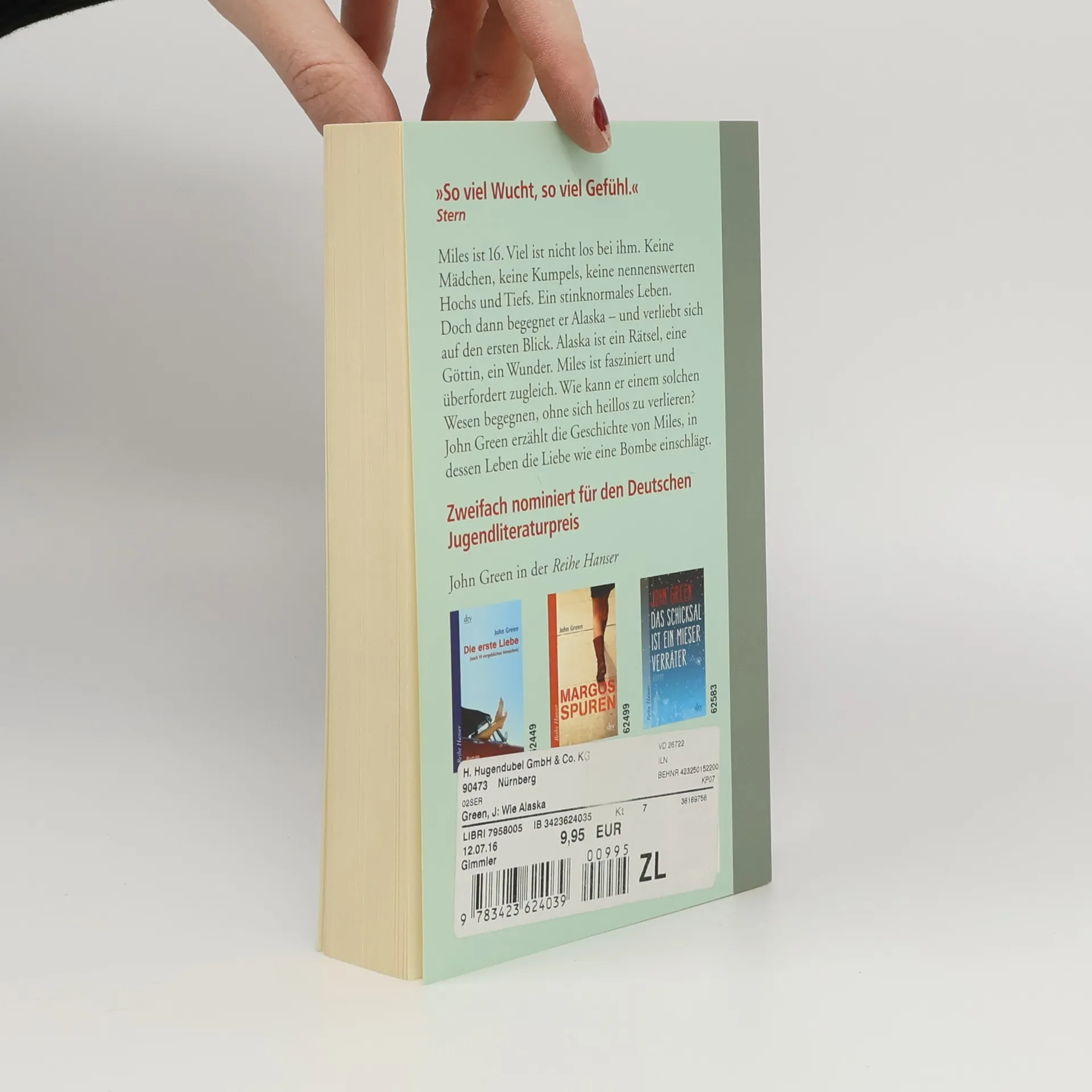 Zweifach nominiert für den Deutschen Jugendliteraturpreis 2008. Miles hat die Schule gewechselt. Auf dem Internat verknallt er sich in die schöne Alaska. Sie ist das Zentrum ihres Sonnensystems, der magische Anziehungspunkt des Internats. Wer um sie kreist, ist glücklich und verletzlich gleichermaßen, euphorisch und immer nah am Schulverweis. Alaska mag Lyrik, nächtliche Diskussionen über philosophische Absurditäten, heimliche Glimmstängel im Wald und die echte wahre Liebe. Miles ist fasziniert und überfordert zugleich. Dass hinter dieser verrückten, aufgekratzten Schale etwas Weiches und Verletzliches steckt, ist offensichtlich. Wer ist Alaska wirklich? Mit Anmut und Humor, voller Selbstironie und sehr charmant erzählt Green die zu Tränen rührende Geschichte von Miles, in dessen Leben die Liebe wie eine Bombe einschlägt.