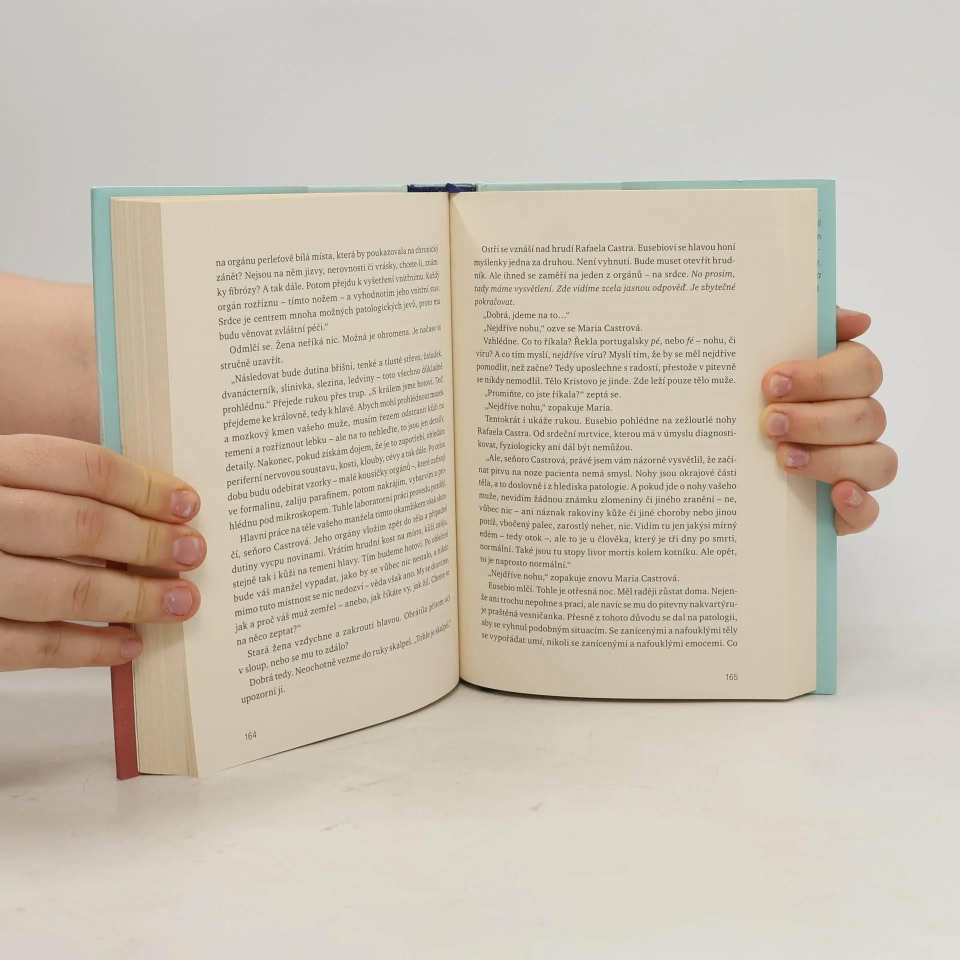 Martelovo veselé i smutné zkoumání fenoménu náboženské víry. Je lepší věřit, anebo nevěřit, a jak se vyhnout neblahým důsledkům obojího? Na to odpovídají tři příběhy, z nichž se kniha skládá. První se odehrává v roce 1904, kdy se mladý muž jménem Tomas vydal pozpátku na pouť do portugalských hor. Druhý příběh nás přenese do roku 1938, kdy jistý lékař provádí ohledání těla jistého starce, ale musí se při tom vyrovnávat s neochvějnou přítomností jeho vdovy. V třetím příběhu se setkáváme s americkým senátorem, jehož život a kariéra jsou navždy proměněny během návštěvy útulku pro opuštěné šimpanze.