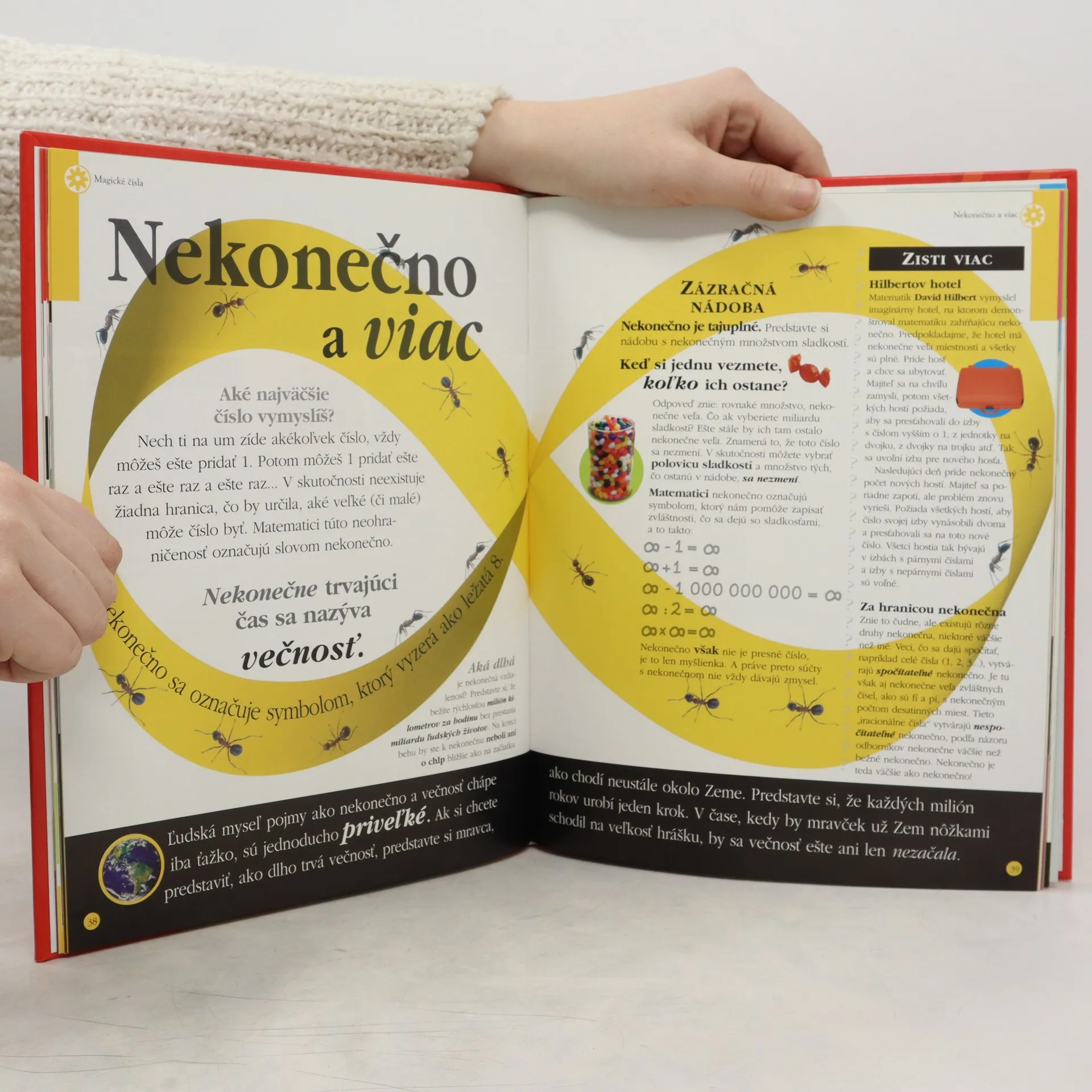 Táto pestrofarebná publikácia je určená mladším čitateľom, aby ich previedla svetom čísel. Je vhodná pre tých, čo matematiku milujú a chcú si v nej prehlbovať znalosti, a tiež pomáha tým, ktorí s ňou majú problémy. Snaží sa takto budovať pozitívny vzťah k číslam a ukazuje, že táto „seriózna“ disciplína môže byť zároveň aj zábavou. Obsah: Odkiaľ pochádzajú čísla?, Kúzelné čísla, Tvarovanie, Matematický svet.
