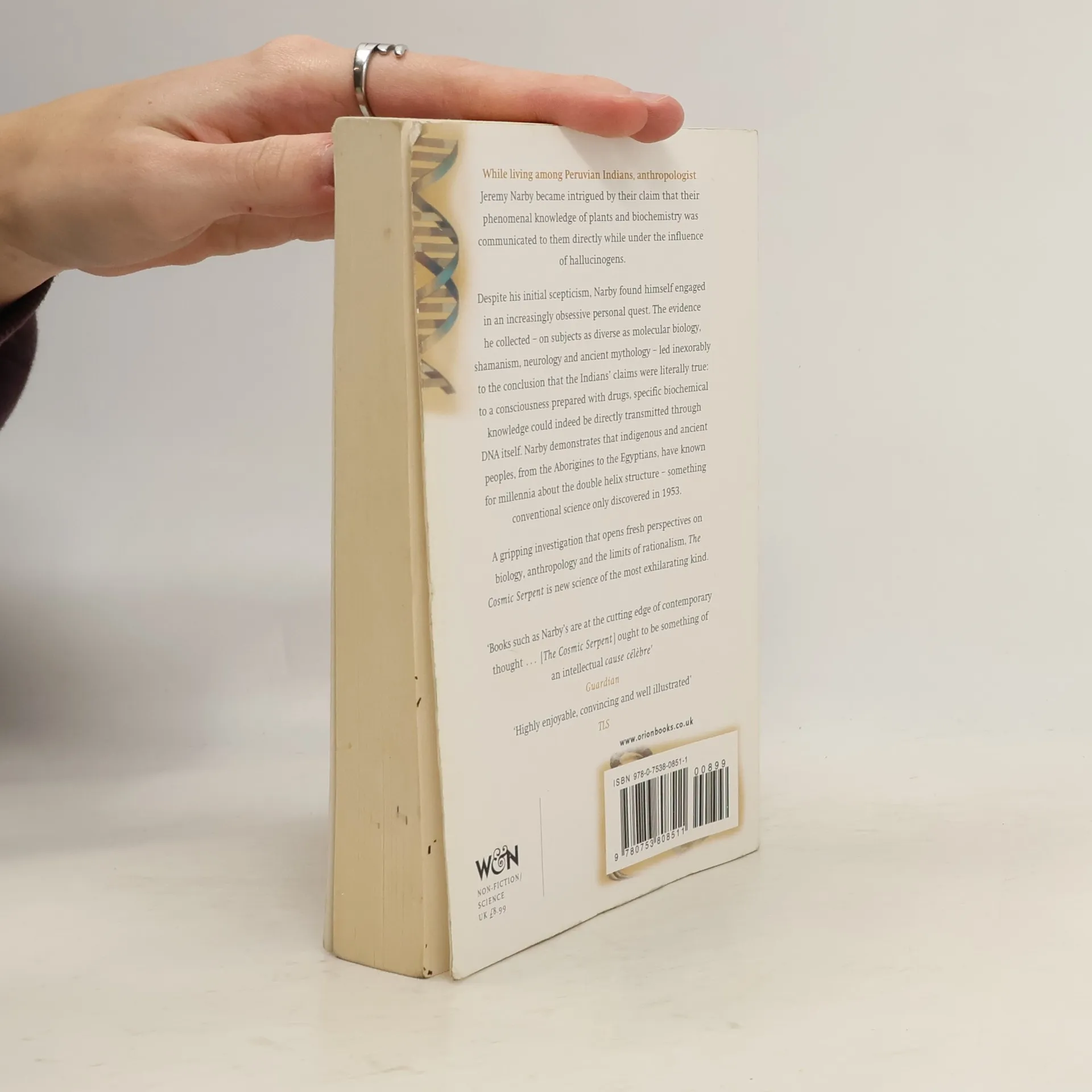 Whilst living amongst Peruvian Indians, anthropologist Jeremy Narby learned of their phenomenal knowledge of plants and biochemical interactions, gained under the influence of the hallucinogen ayahuasca. Despite his initial scepticism, Narby found himself engaged in an increasingly obsessive quest. He researched cutting-edge scholarship in subjects as diverse as molecular biology, shamanism, neurology and mythology, which led him inexorably to the conclusion that the Indians' claims were literally true: to a consciousness prepared with drugs, biochemical knowledge could indeed be transmitted, through DNA itself.